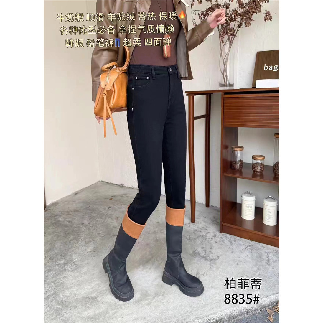 8835柏菲蒂2025冬季新款大码女装显瘦加薄绒牛仔裤子铅笔裤小脚裤