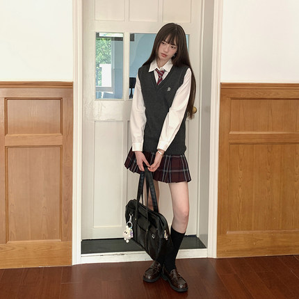 东京岁时记jk毛衣马甲春秋学院风制服叠穿针织背心女上衣格裙套装