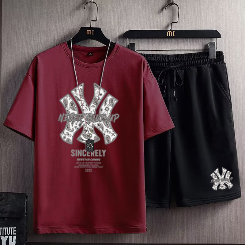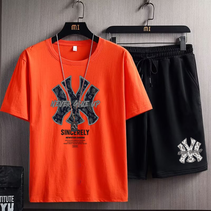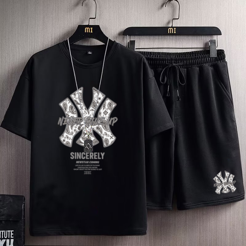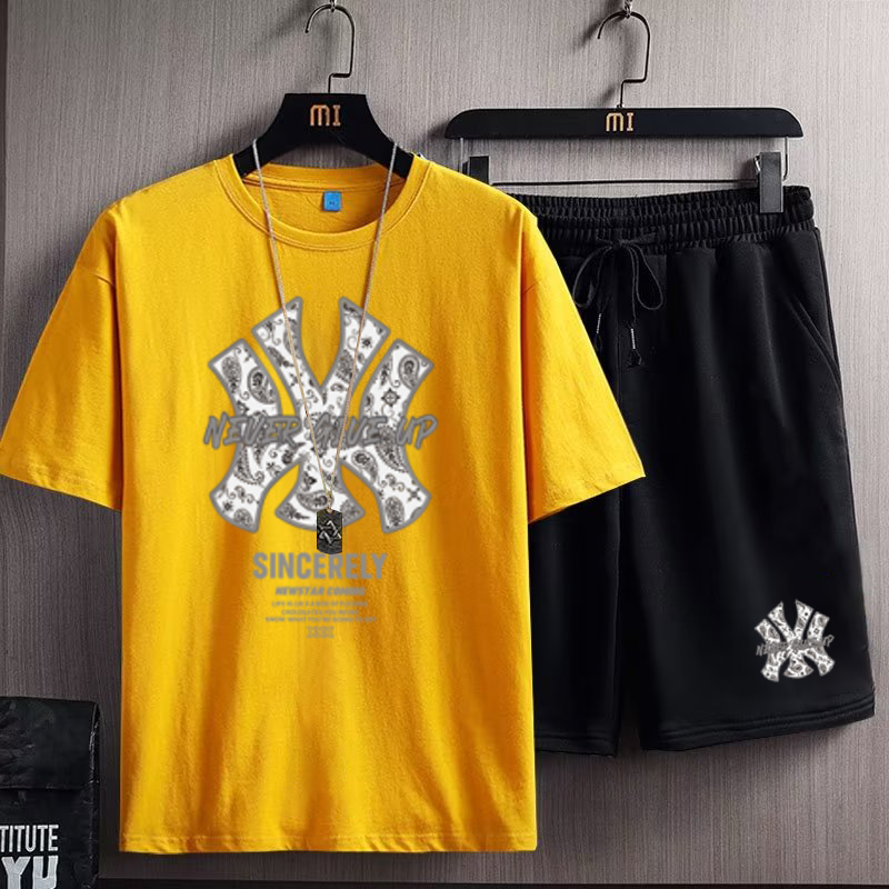 欧美潮流字母印花短袖短裤男士2023夏季新款宽松加肥加大运动套装