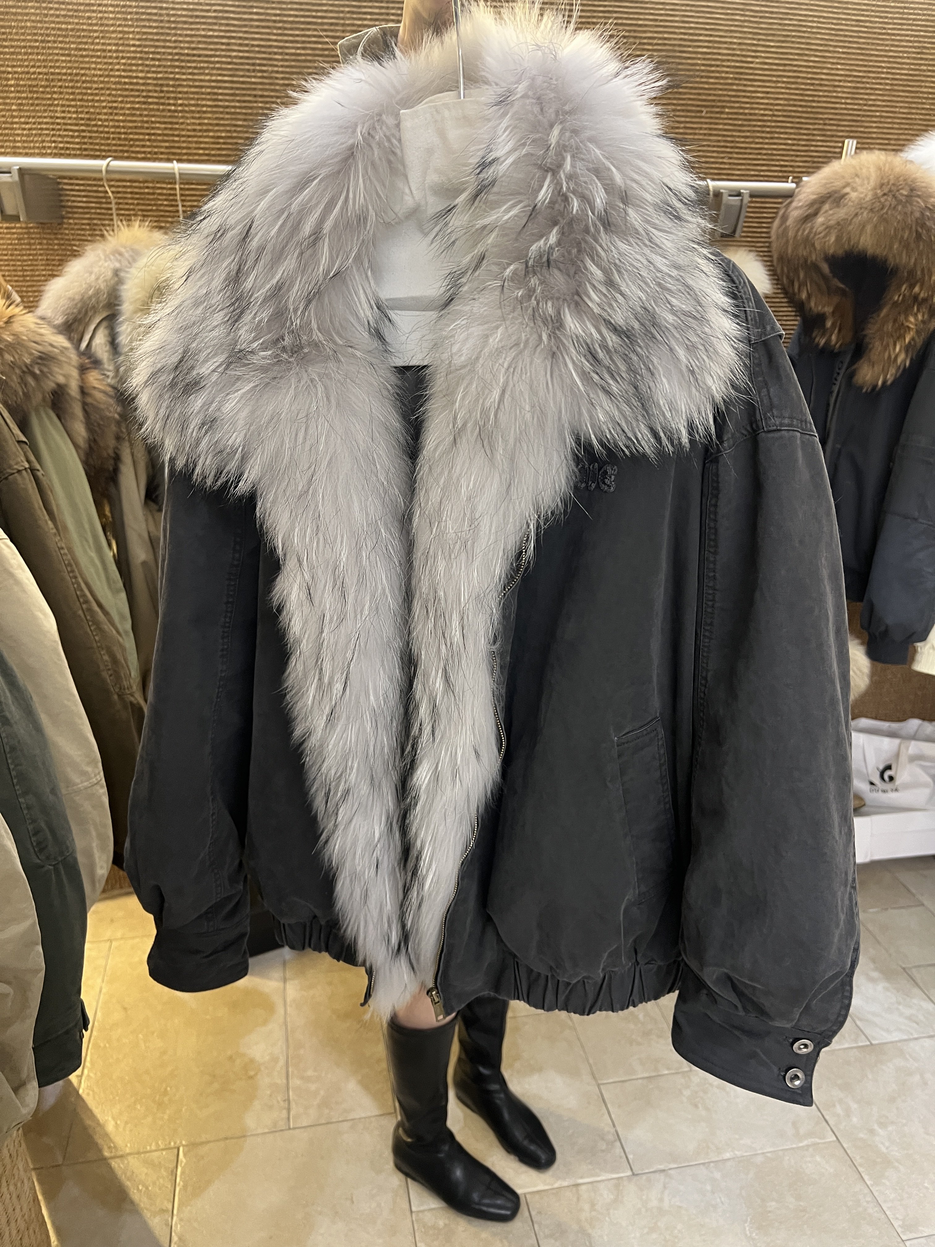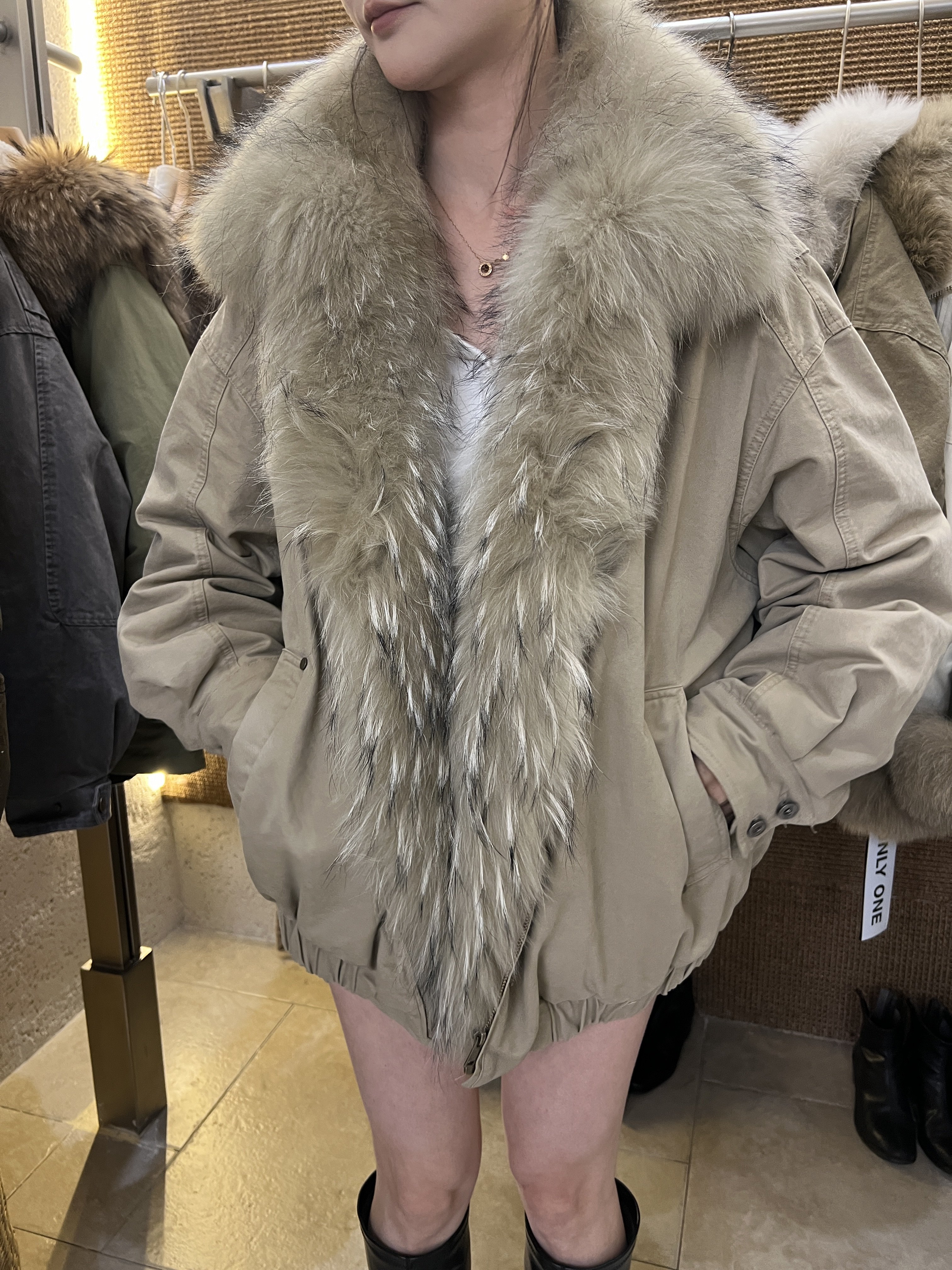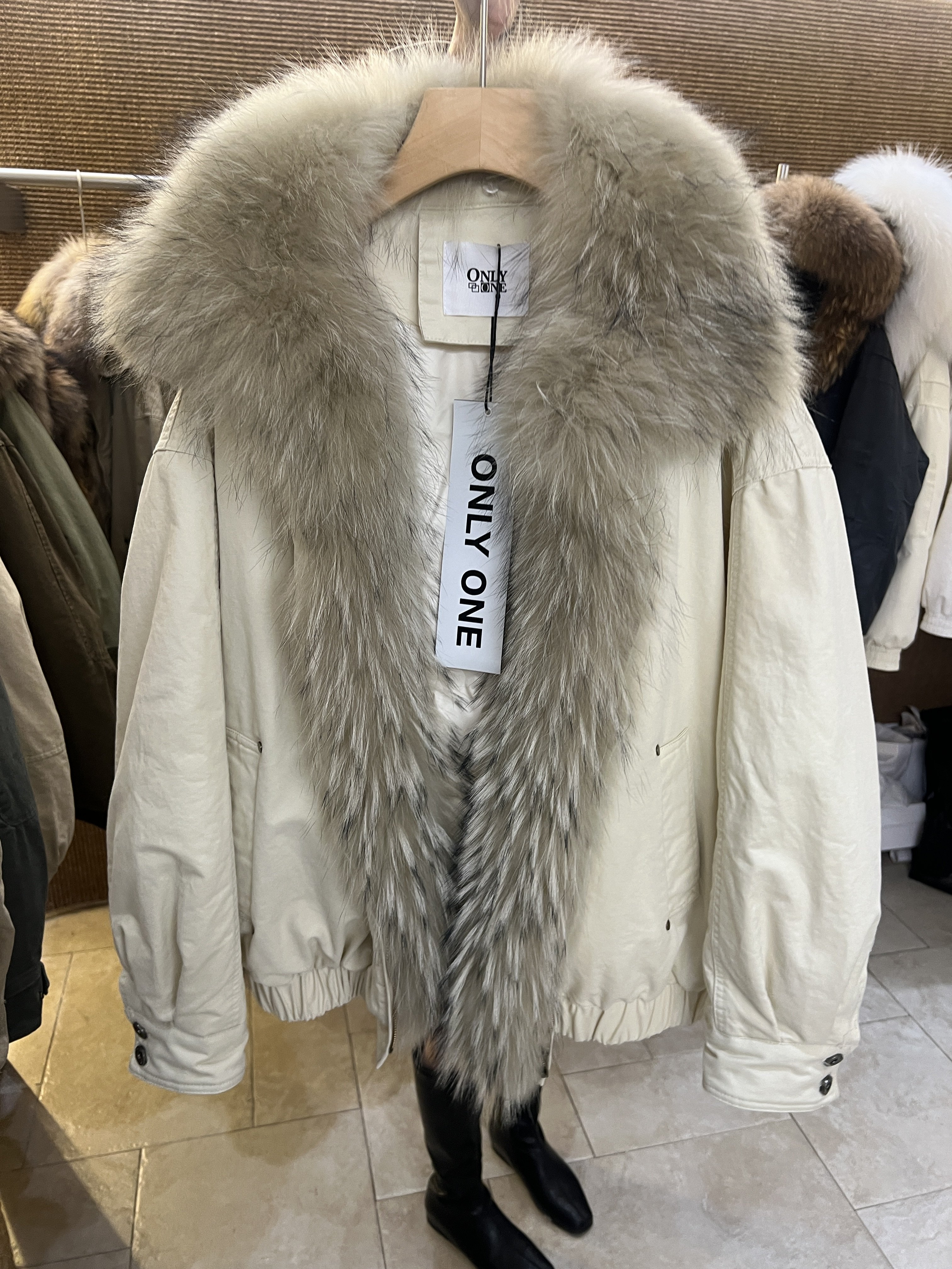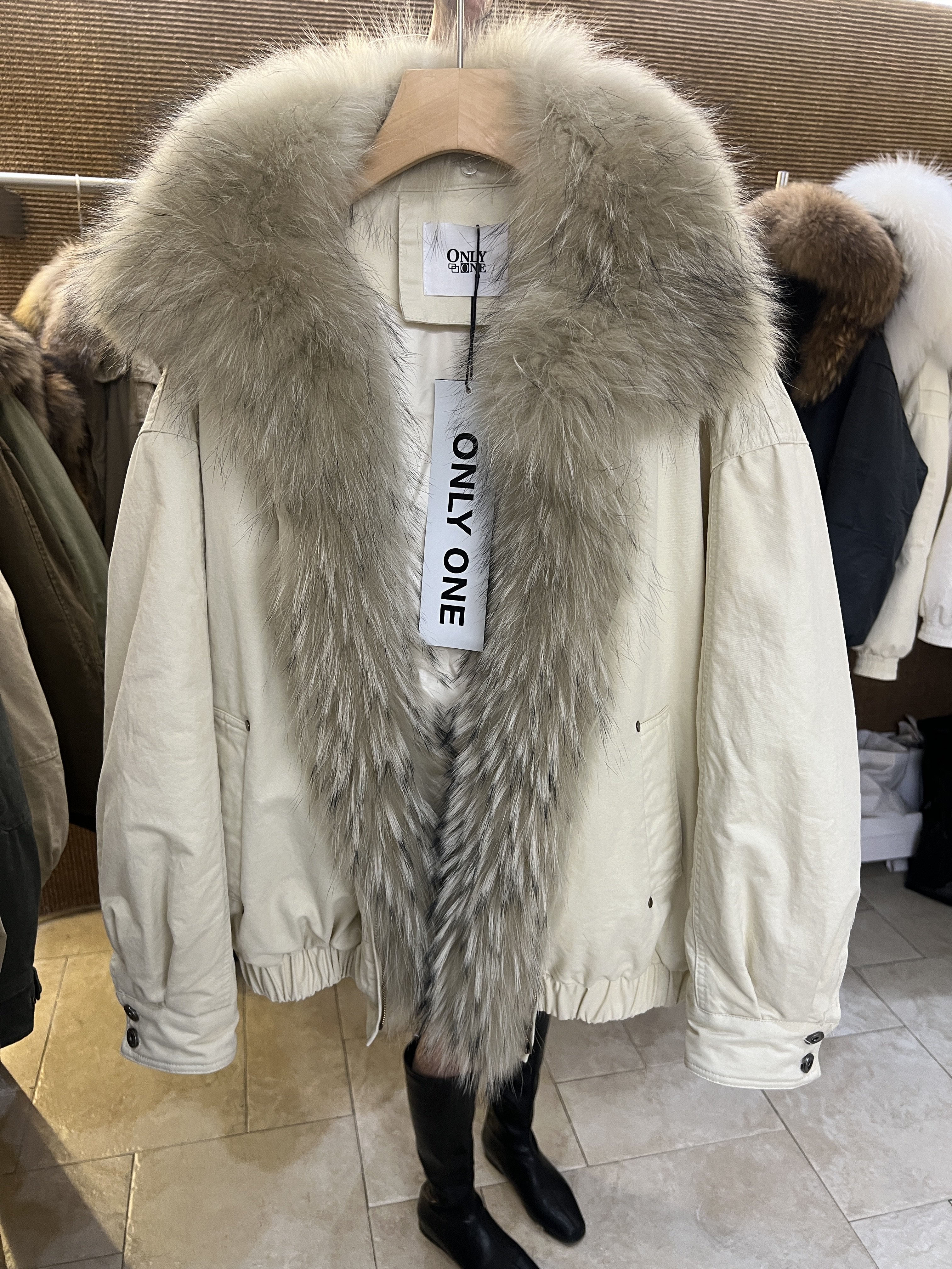 onlyone美式复古超大毛领洗水棉中长派克服女加厚鹅绒真毛羽绒服