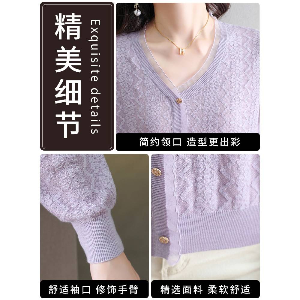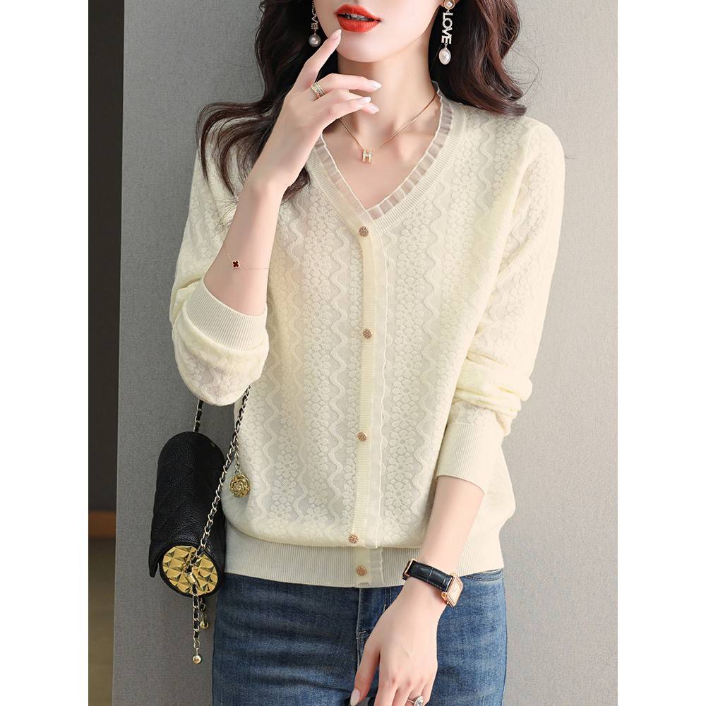 V领针织衫女士秋冬2025新款蕾丝打底衫长袖上衣内搭大码妈妈毛衣