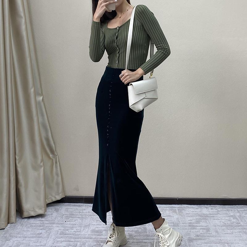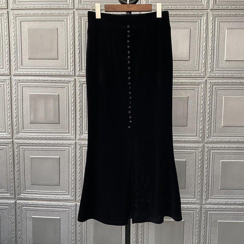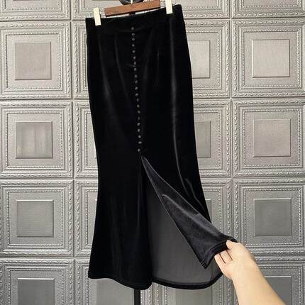 欧货复古高腰金丝绒半身裙女春夏中长款包臀裙子鱼尾裙a字一步裙