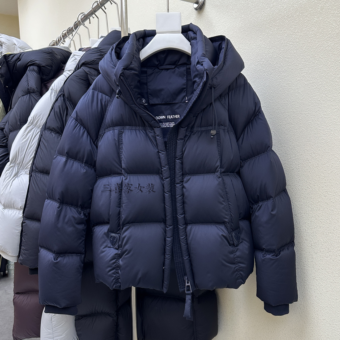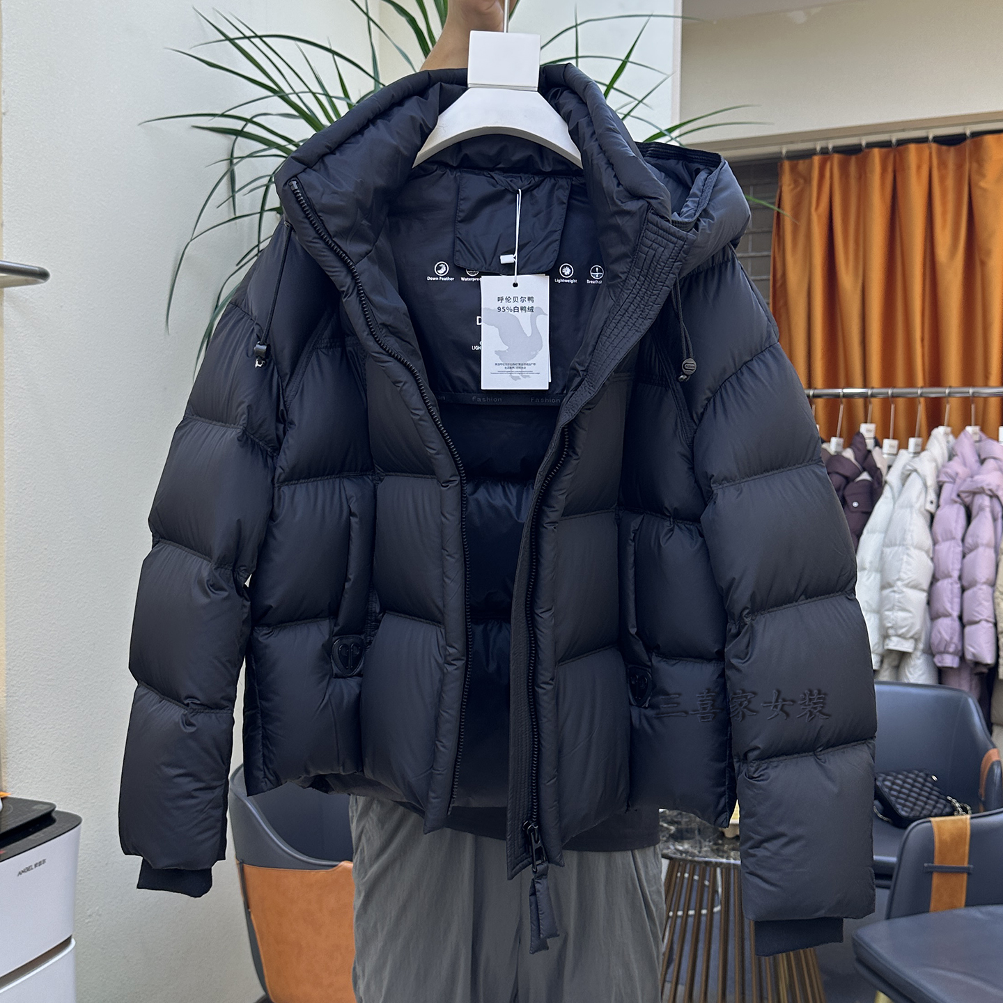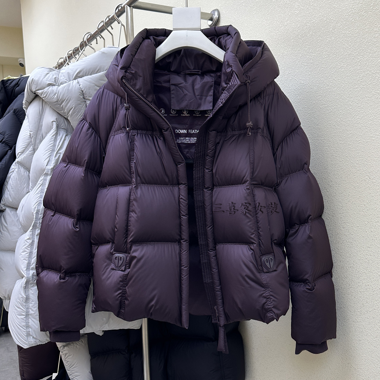 95白鸭绒连帽短款加厚简约羽绒服女2025秋冬新款小个子面包服外套