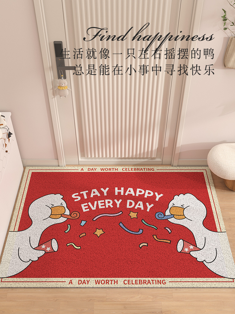 入户门地垫进门门口门垫家用玄关丝圈防滑脚垫网红卡通鸭门外地毯