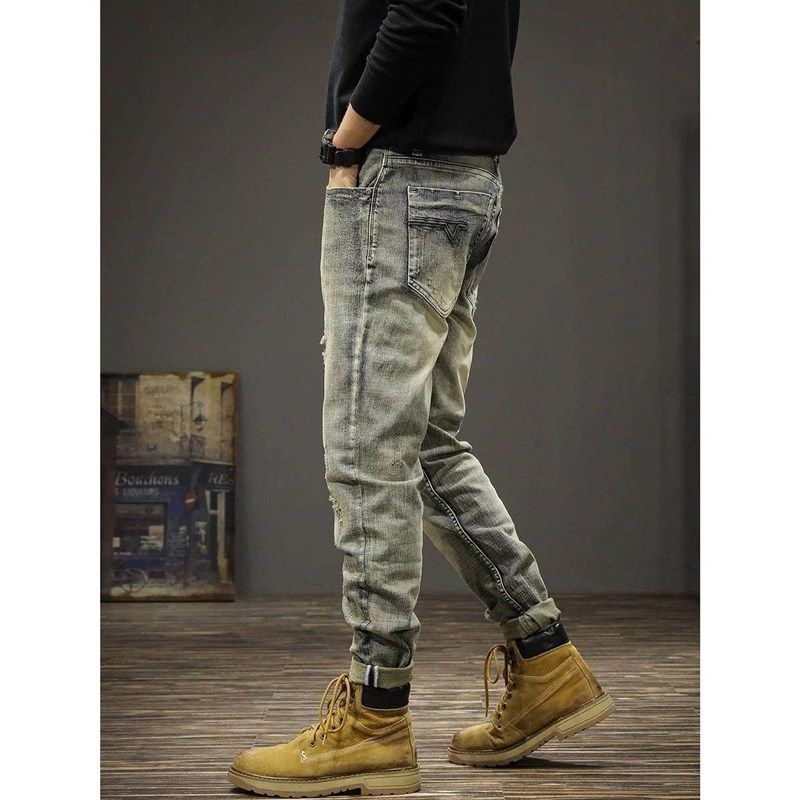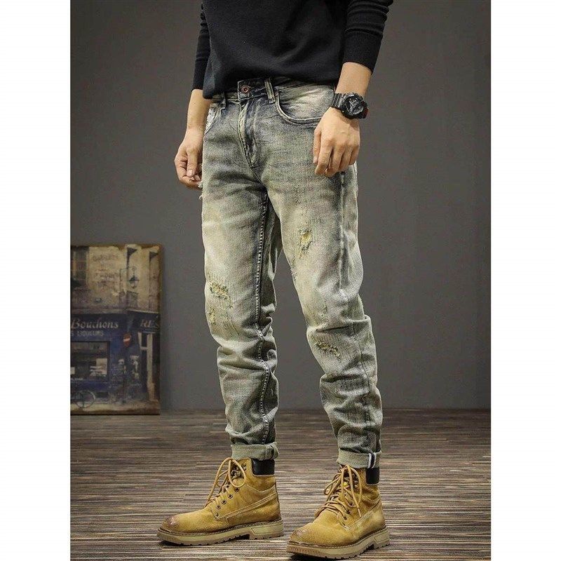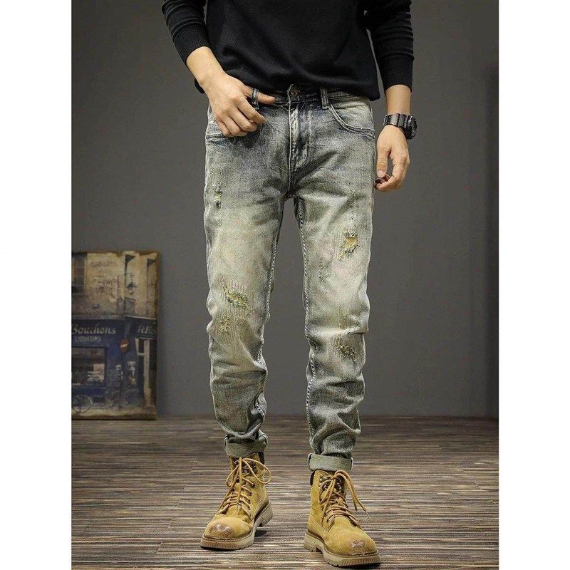 秋季2024新款潮牌美式覆古牛仔裤男修身直筒破洞高端潮流秋冬裤子