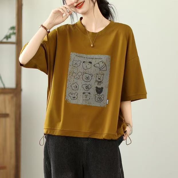 2025年夏款T恤短袖女卡通套头全棉T恤半袖宽松休闲韩版学院风