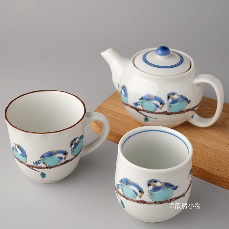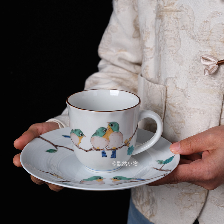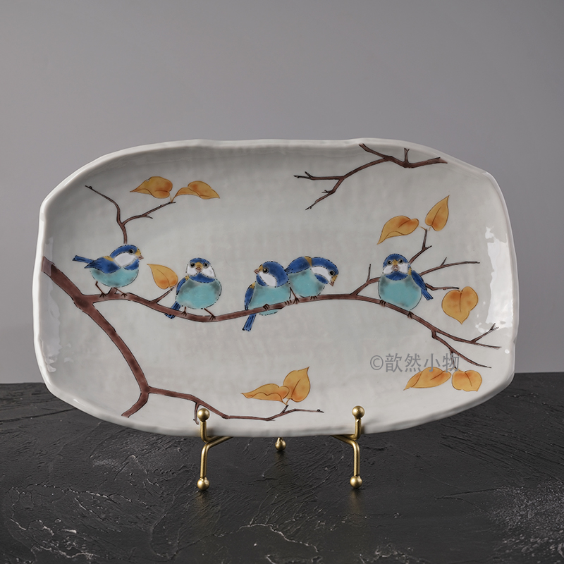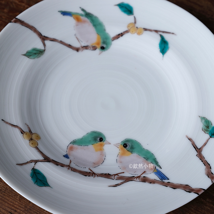 日本进口九谷烧绣眼小鸟餐具日式陶瓷盘子饭碗圆盘釉下彩寿司摆盘