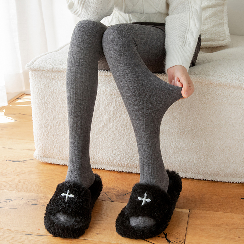 针织麻花灰色打底裤女外穿高腰收腹秋冬加绒保暖弹力显瘦棉连裤袜