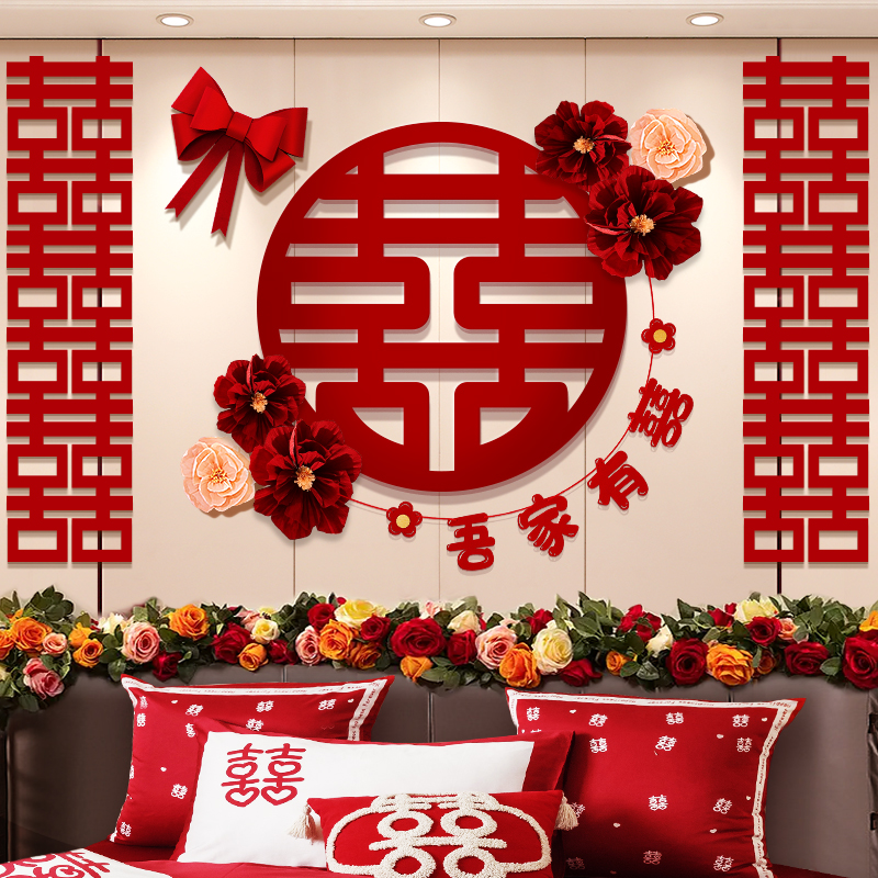 男方主卧装饰结婚全套床头套装婚房新房布置卧室房间女方婚礼一套