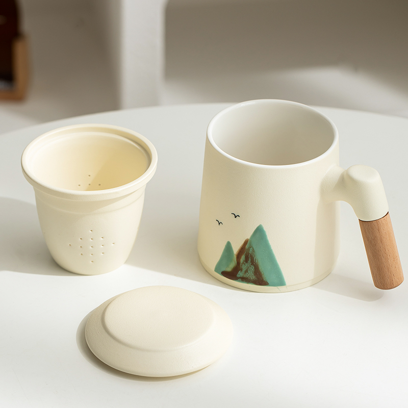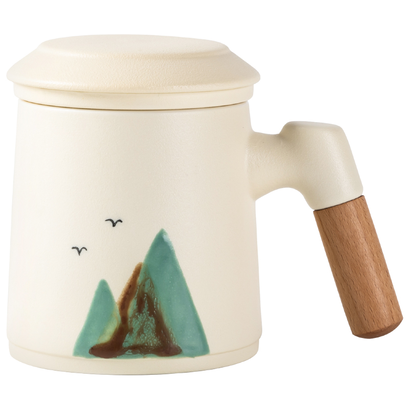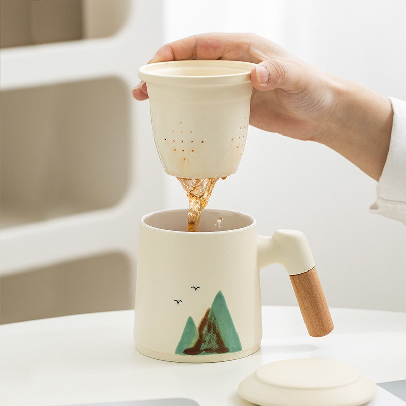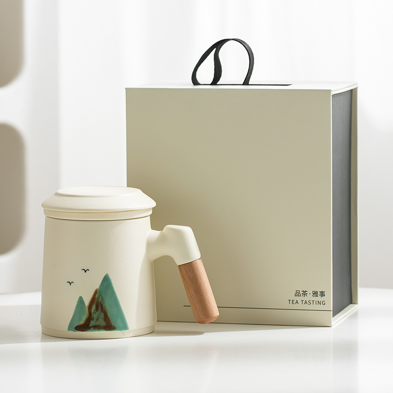 陶瓷马克杯办公室茶水分离泡茶杯子带盖过滤家用水杯logo定制礼盒