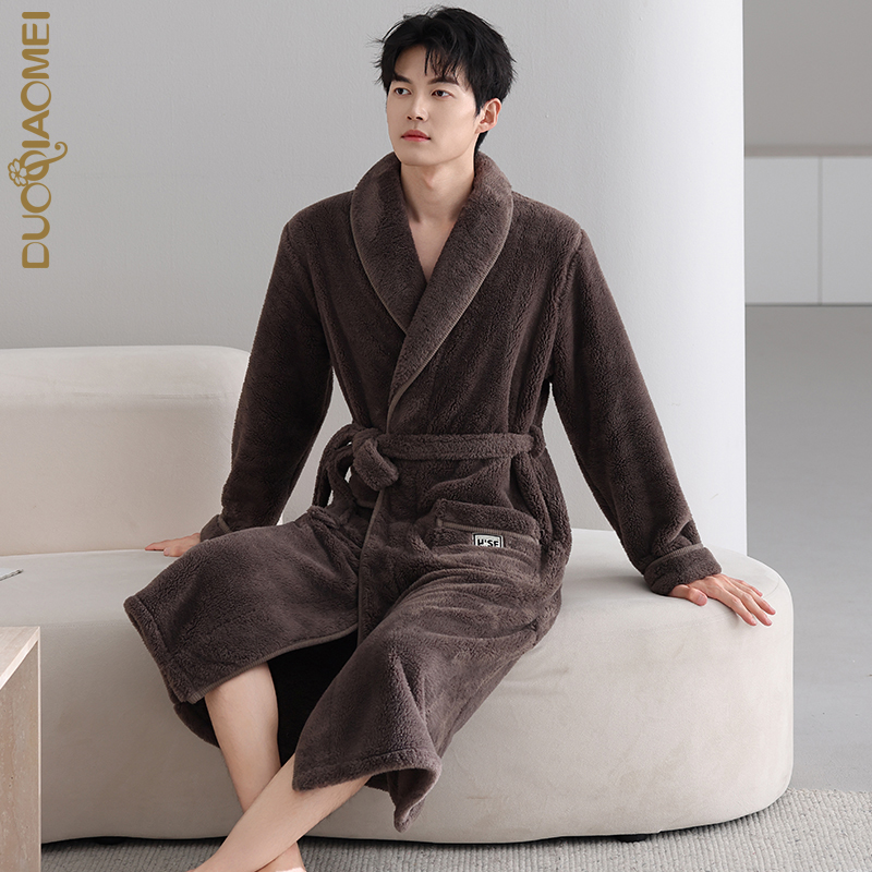 多俏美法兰绒睡袍男秋冬季加绒加厚浴袍晨袍珊瑚绒睡衣长款家居服