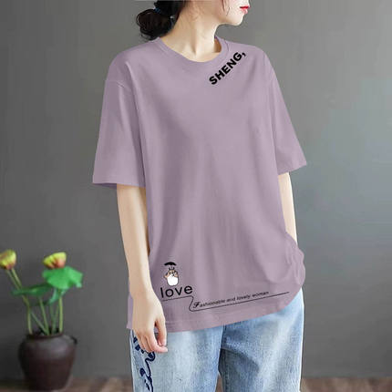 夏季中长款纯棉女士t恤短袖时尚新款宽松显瘦简约ins印花半袖上衣