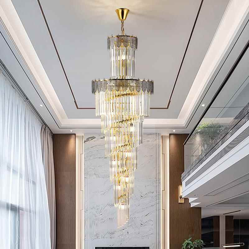 别墅大吊灯客厅复式楼中空简约楼中楼跃层轻奢长水晶旋转楼梯灯