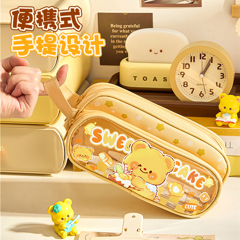 黄油小熊笔袋大容量女生卡皮巴拉文具盒女孩款可爱高颜值ins铅笔盒卡通多层2025新款儿童多功能小学生文具袋