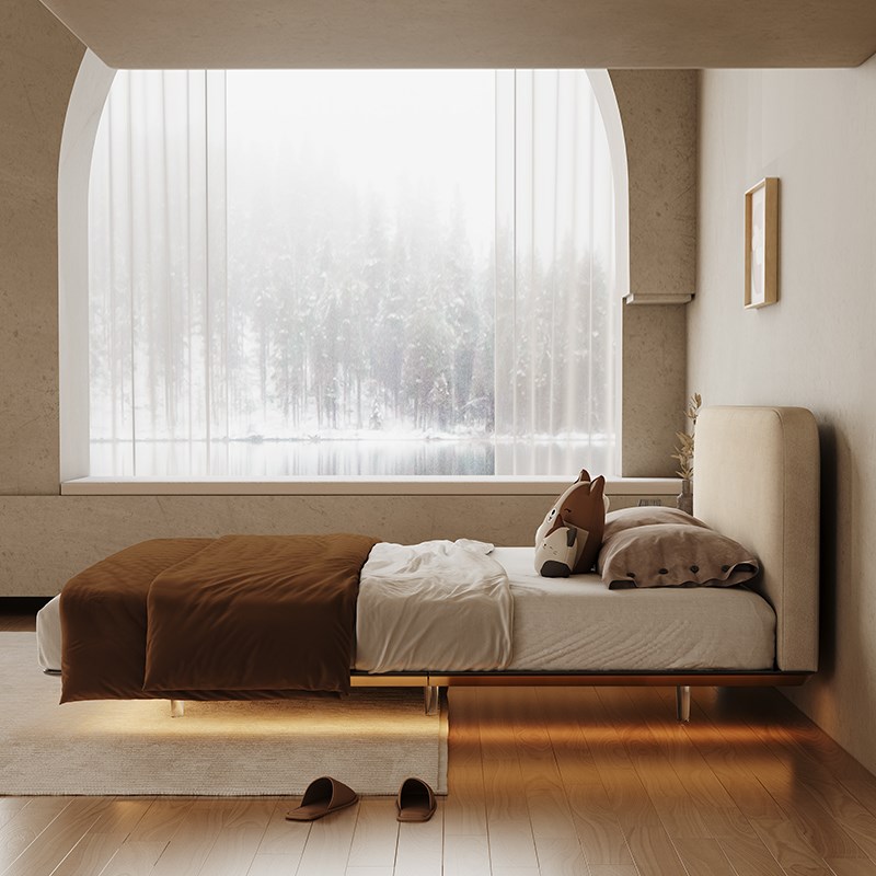 2024新款悬浮床小户型省空间现代简约1.2米主卧复古中古风布艺床
