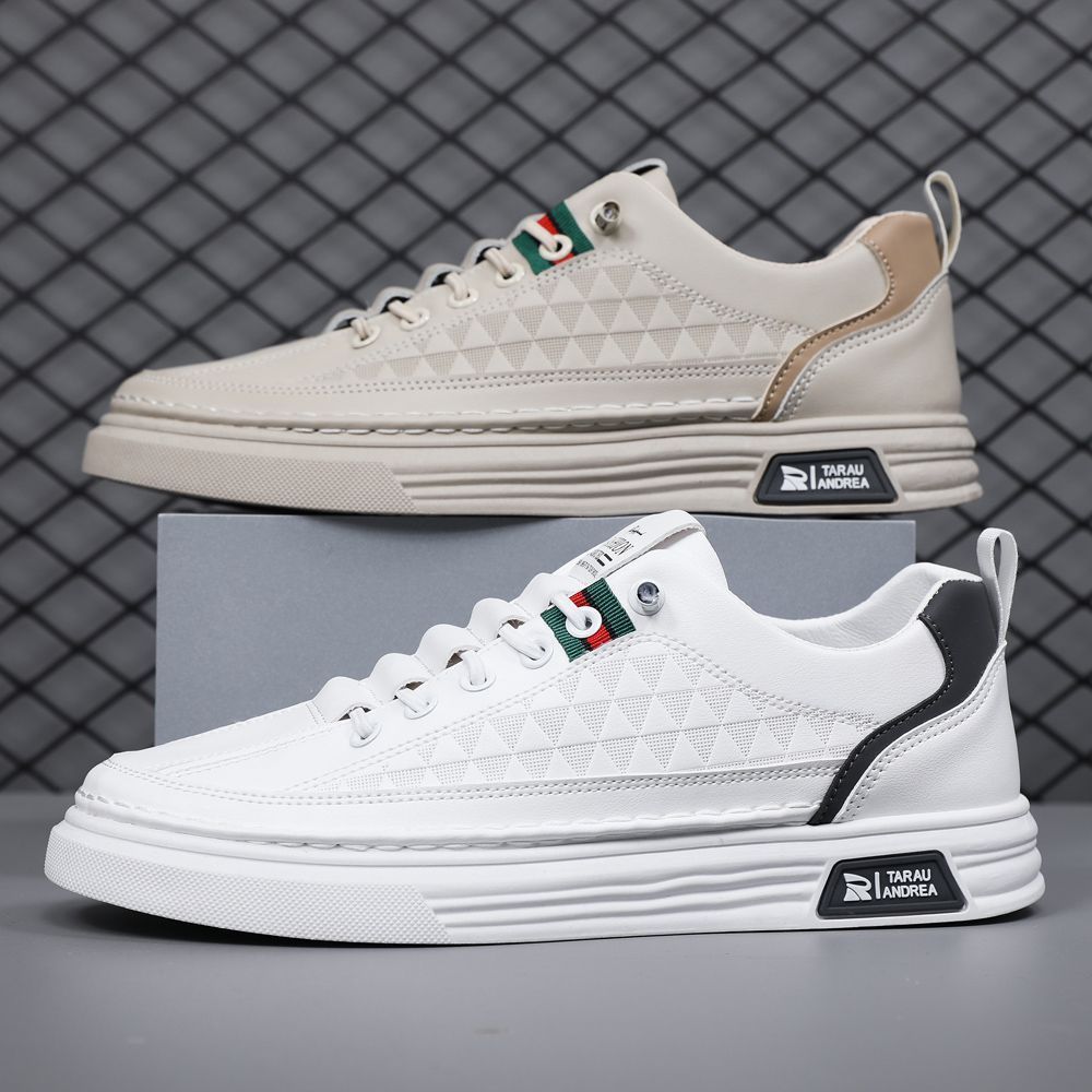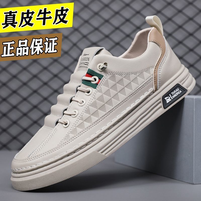 软牛皮小白鞋男潮流百搭白色板鞋男士真皮秋季透气防滑休闲男鞋子