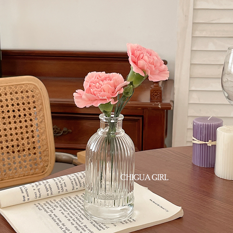 法式复古浮雕玻璃迷你小花瓶ins风透明水培插花花瓶桌面装饰摆件