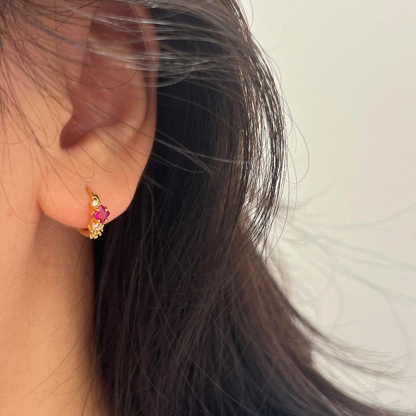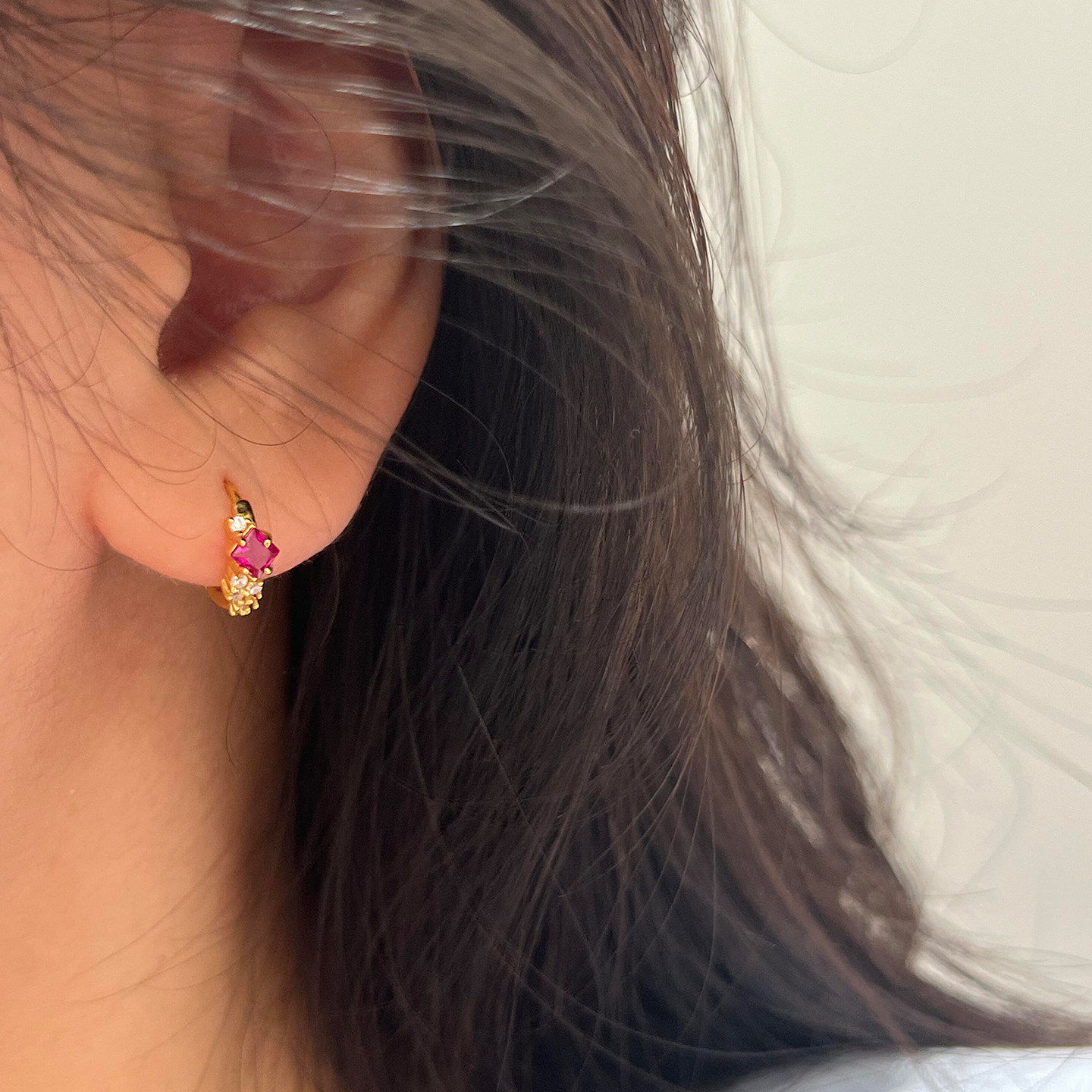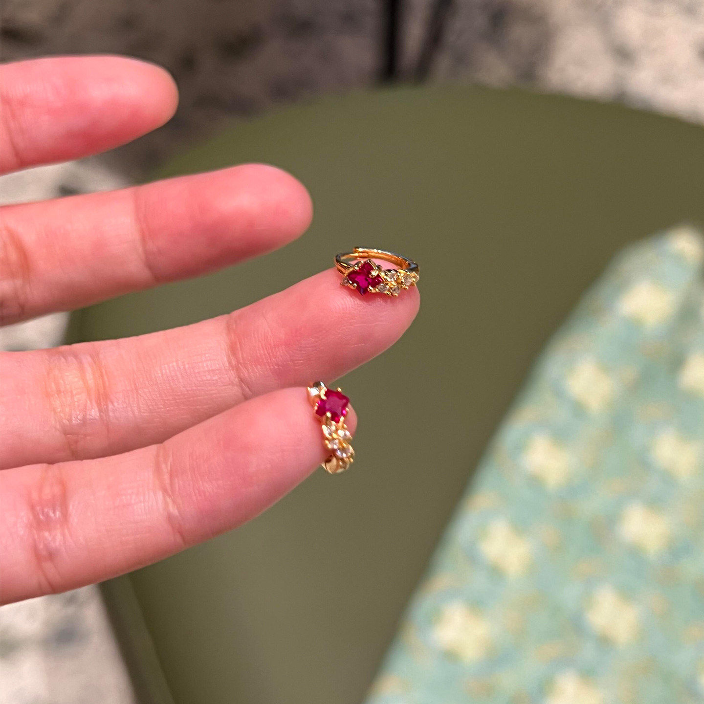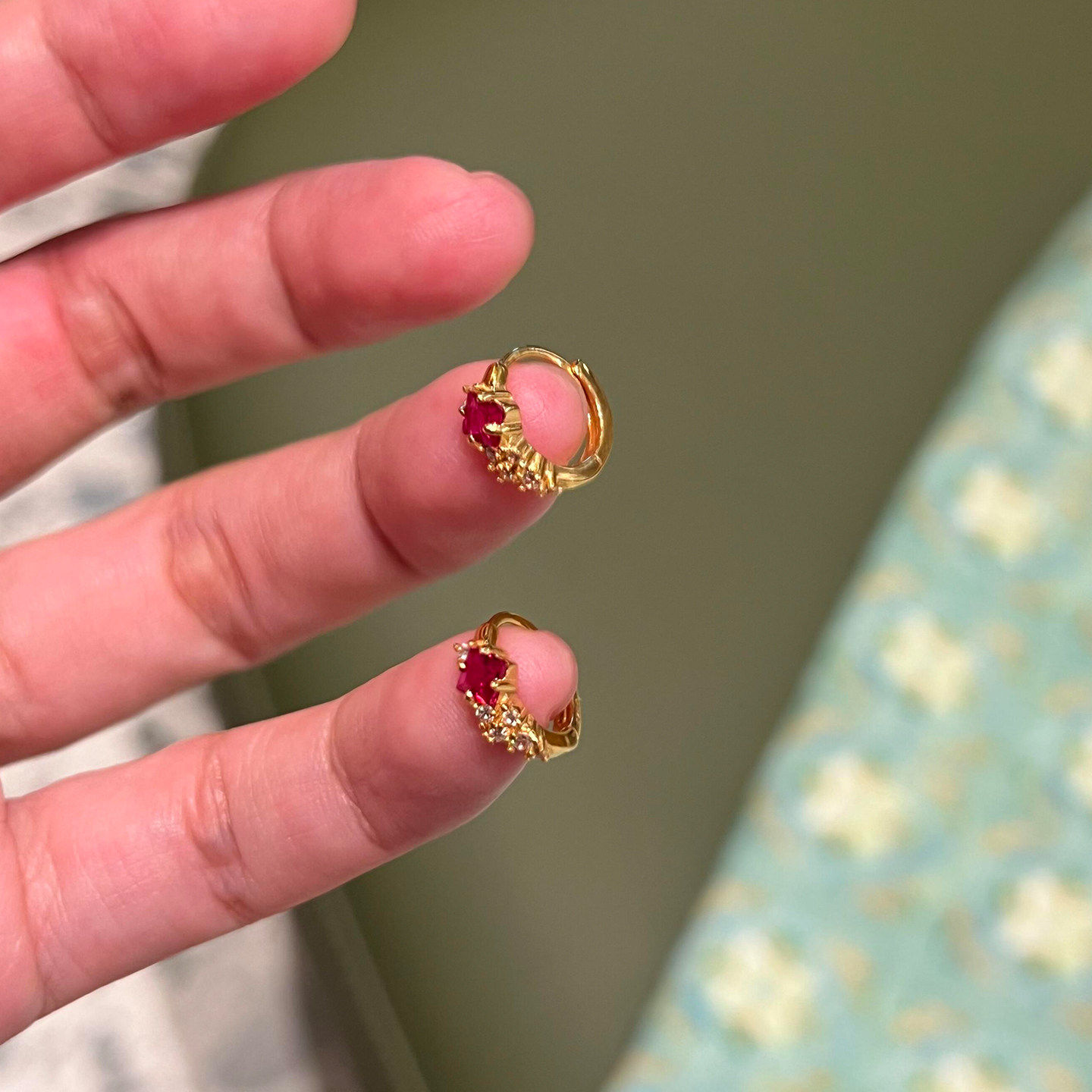 爆闪仿红色小方钻耳扣2026新款爆款高级感轻奢小众独特气质耳饰女
