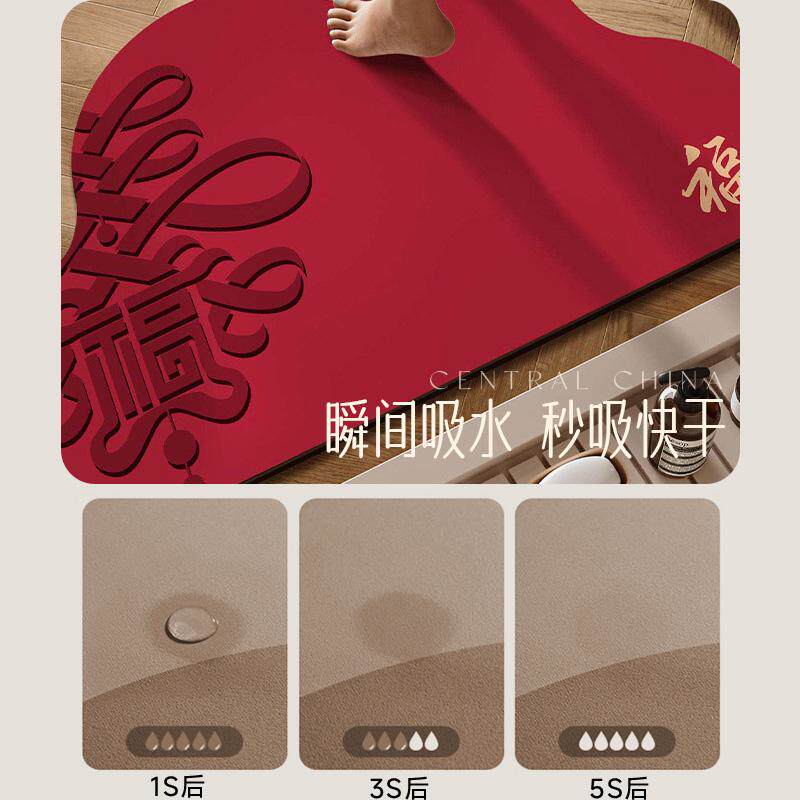 乐肯喜庆红色硅藻泥地垫