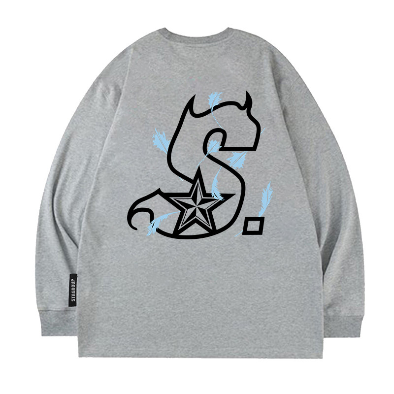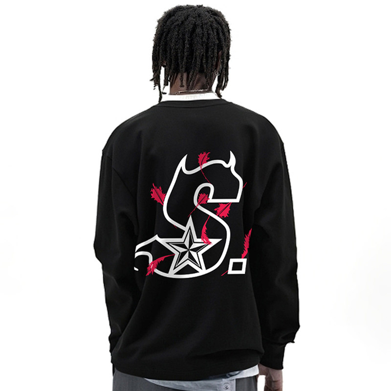 STA复古青少年长袖t恤男款春秋季无帽卫衣圆领内搭打底衫上衣服