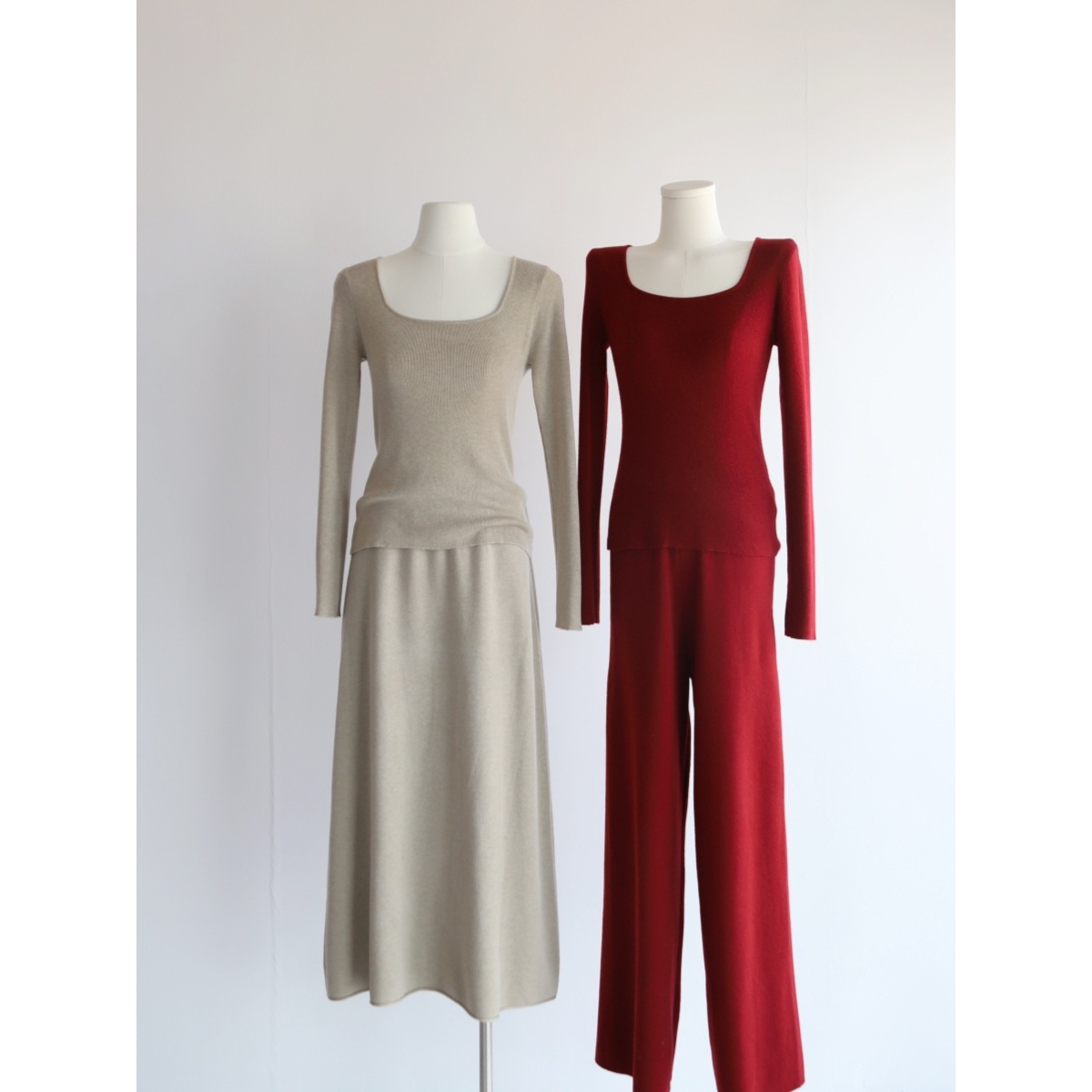 基础款羊毛混纺方领针织打底衫女装秋冬新款长袖内搭极简上衣