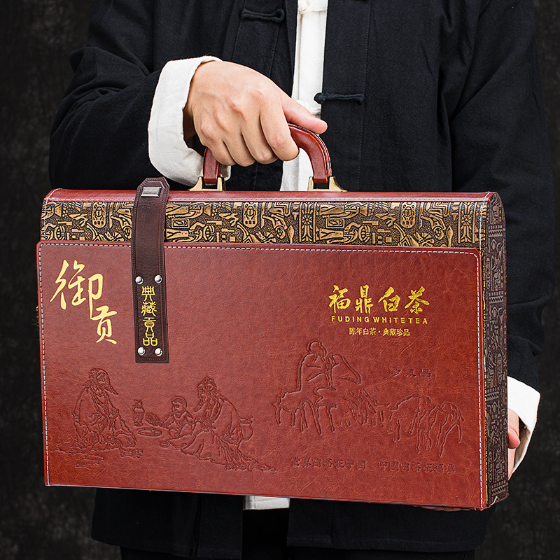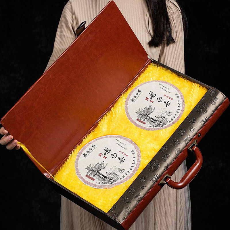 福鼎白茶礼盒装高档皮质包装老白茶枣香寿眉过年元旦送亲戚长辈