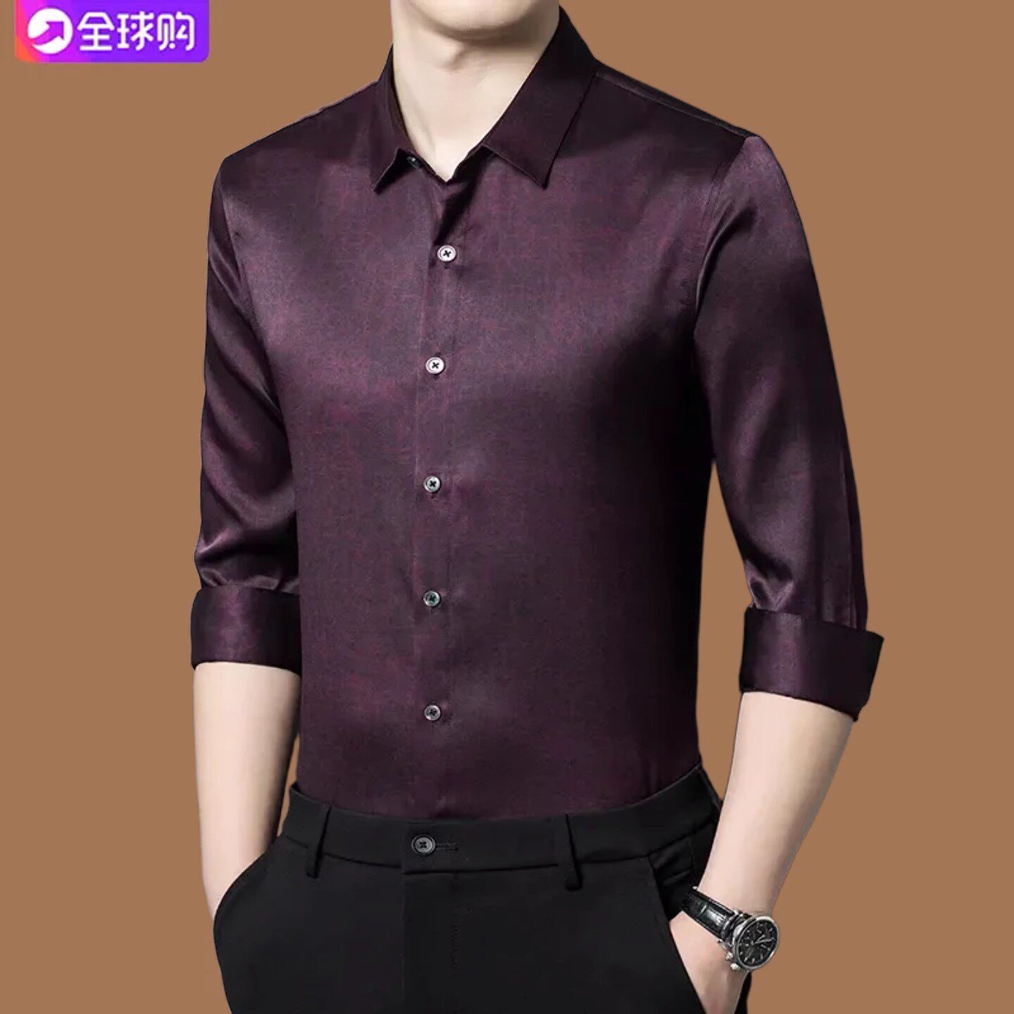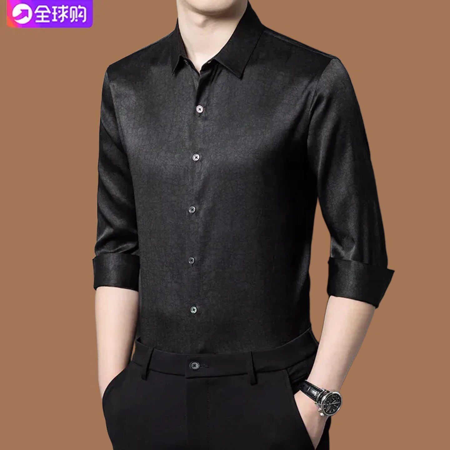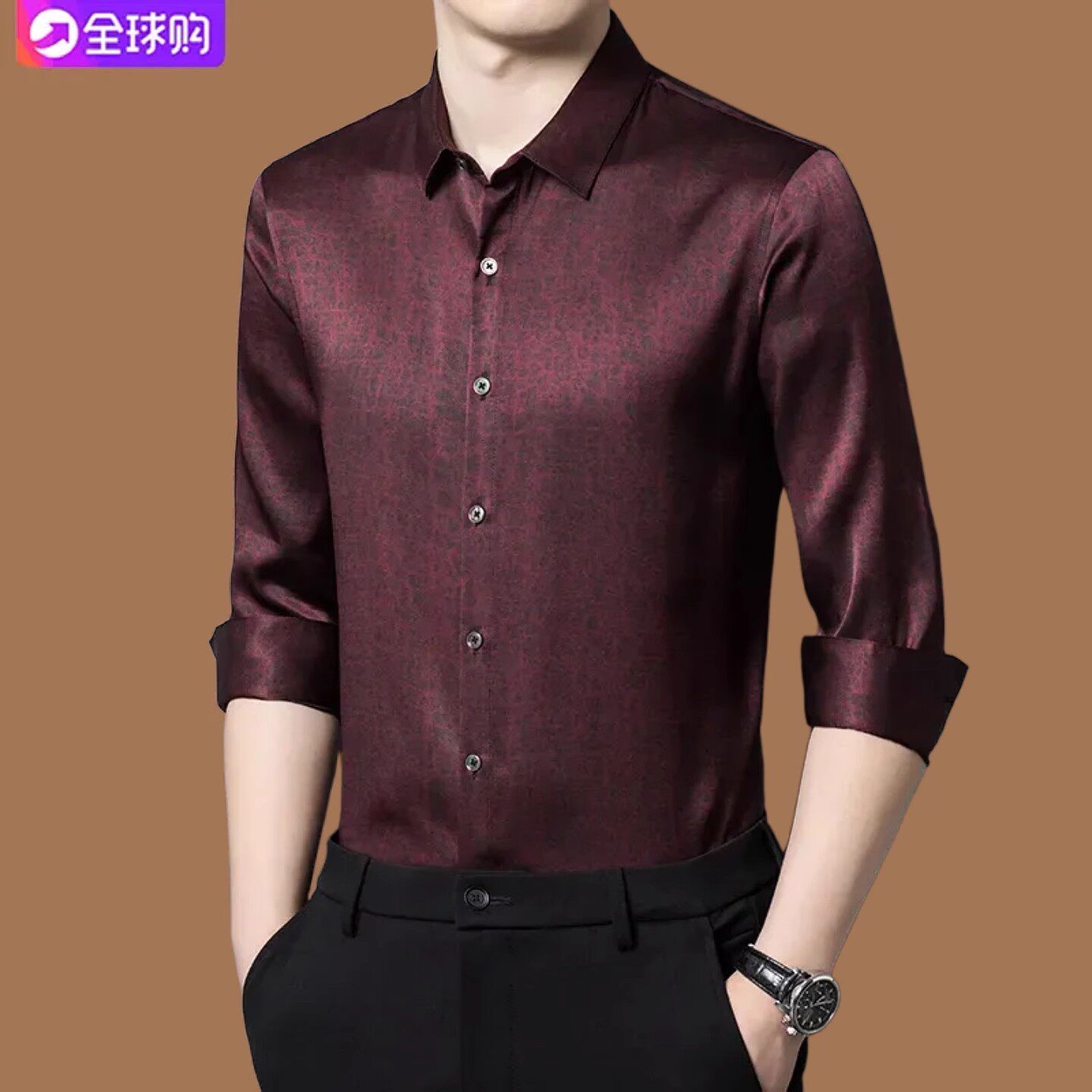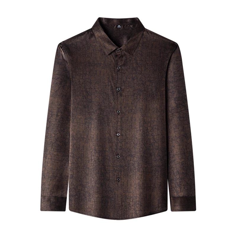 皮尔卡丹男士重磅桑蚕丝长袖衬衫秋季中年高级感真丝香云纱衬衣男
