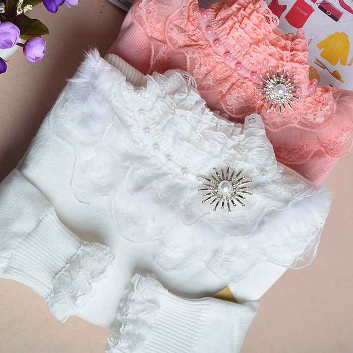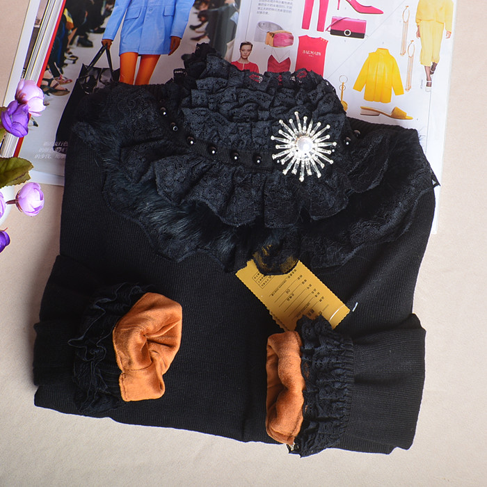 新款针织女高领蕾丝花边袖百搭加厚加绒长袖毛衣保暖打底衫韩版女
