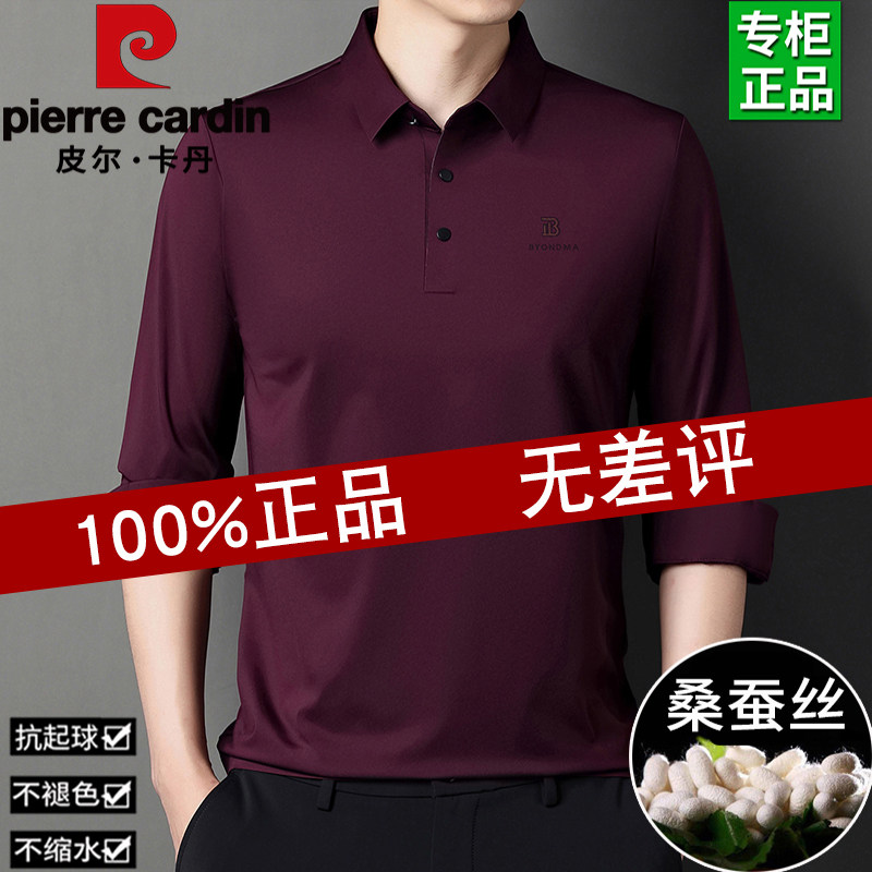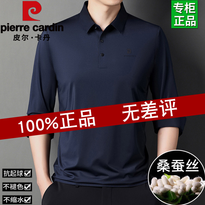 皮尔卡丹桑蚕丝长袖T恤男士春夏季新款爸爸装上衣翻领POLO打底衫