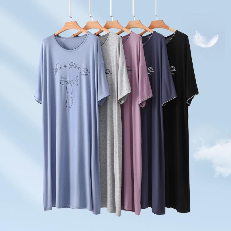 莫代尔睡裙女夏季薄款短袖长款大码睡衣200斤中年妈妈印花家居服