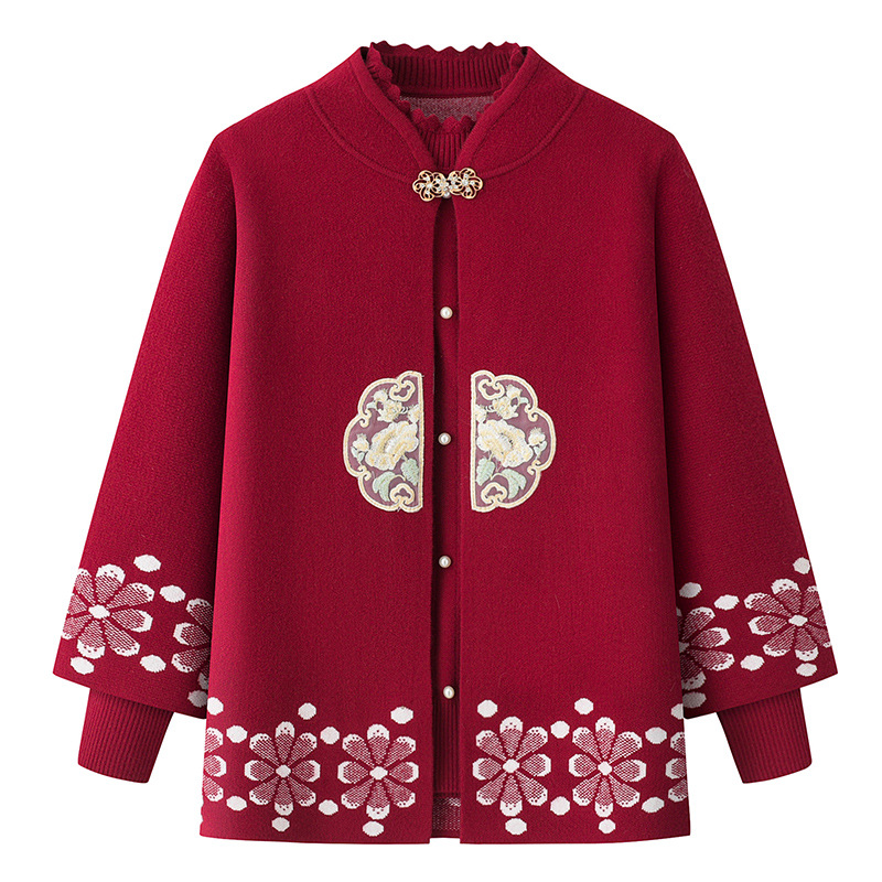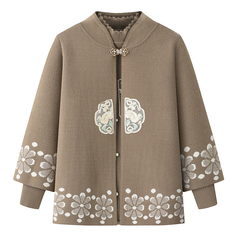 老年人秋冬装女外套毛衣开衫奶奶春秋套装太太衣服妈妈唐装两件套