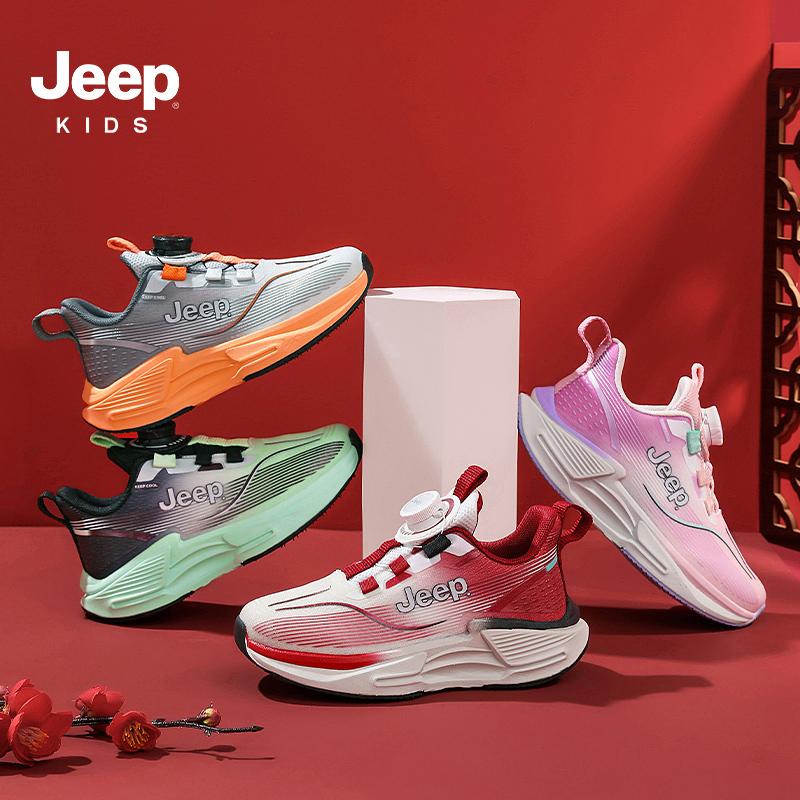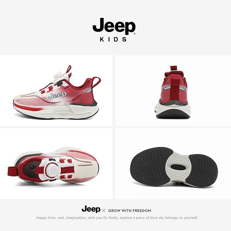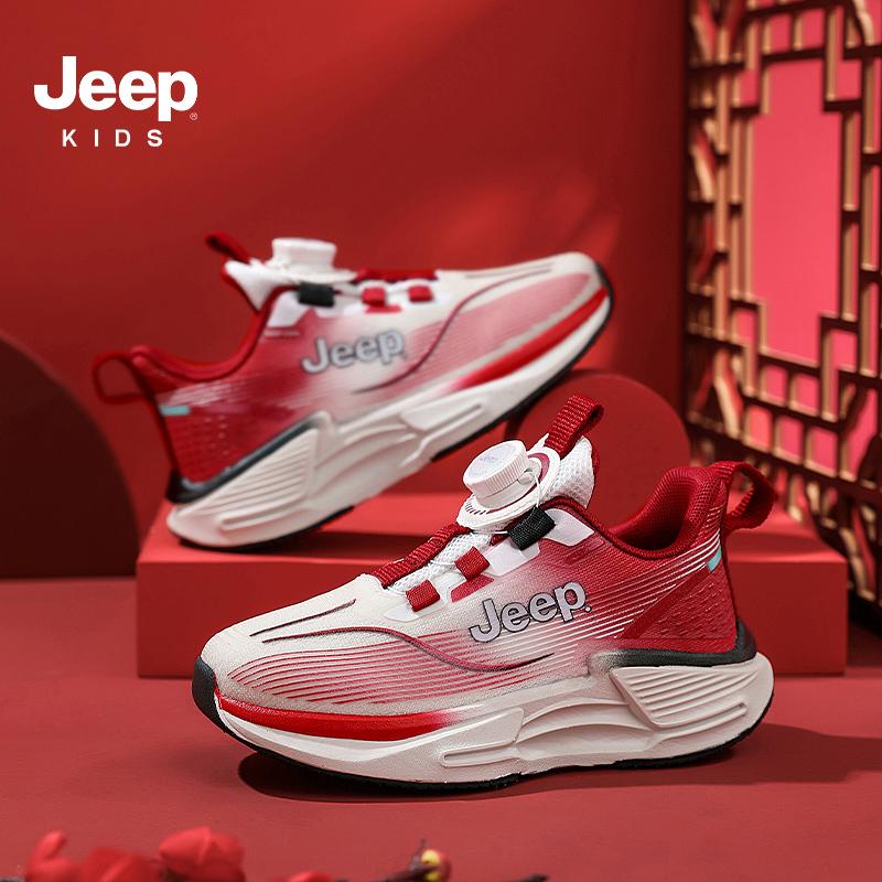 Jeep儿童篮球鞋红色夜光休闲轻便运动鞋春夏季旋转纽扣大童跑步鞋