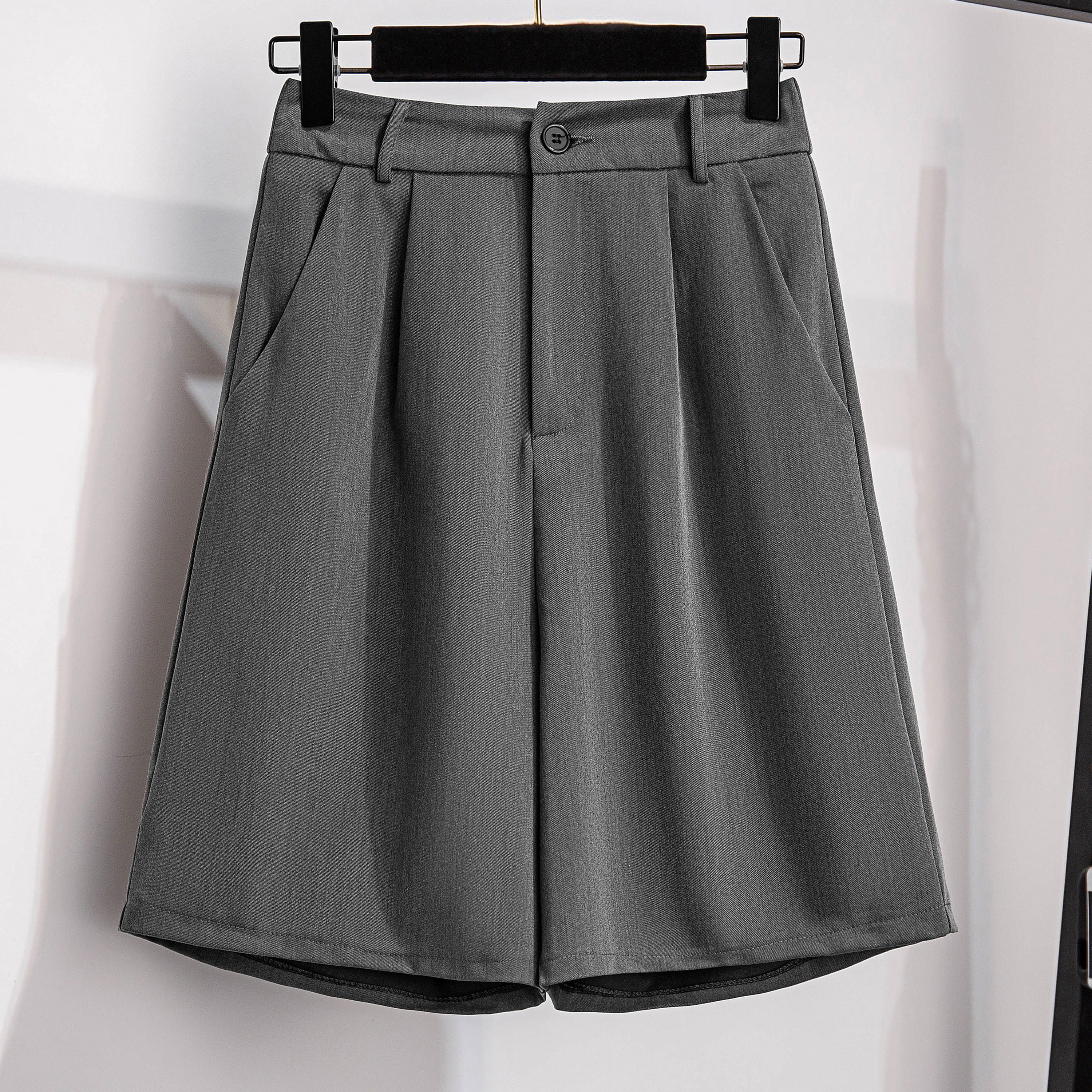 七月原创直筒休闲西装短裤女300斤胖mm宽松显瘦大码五分裤阔腿裤