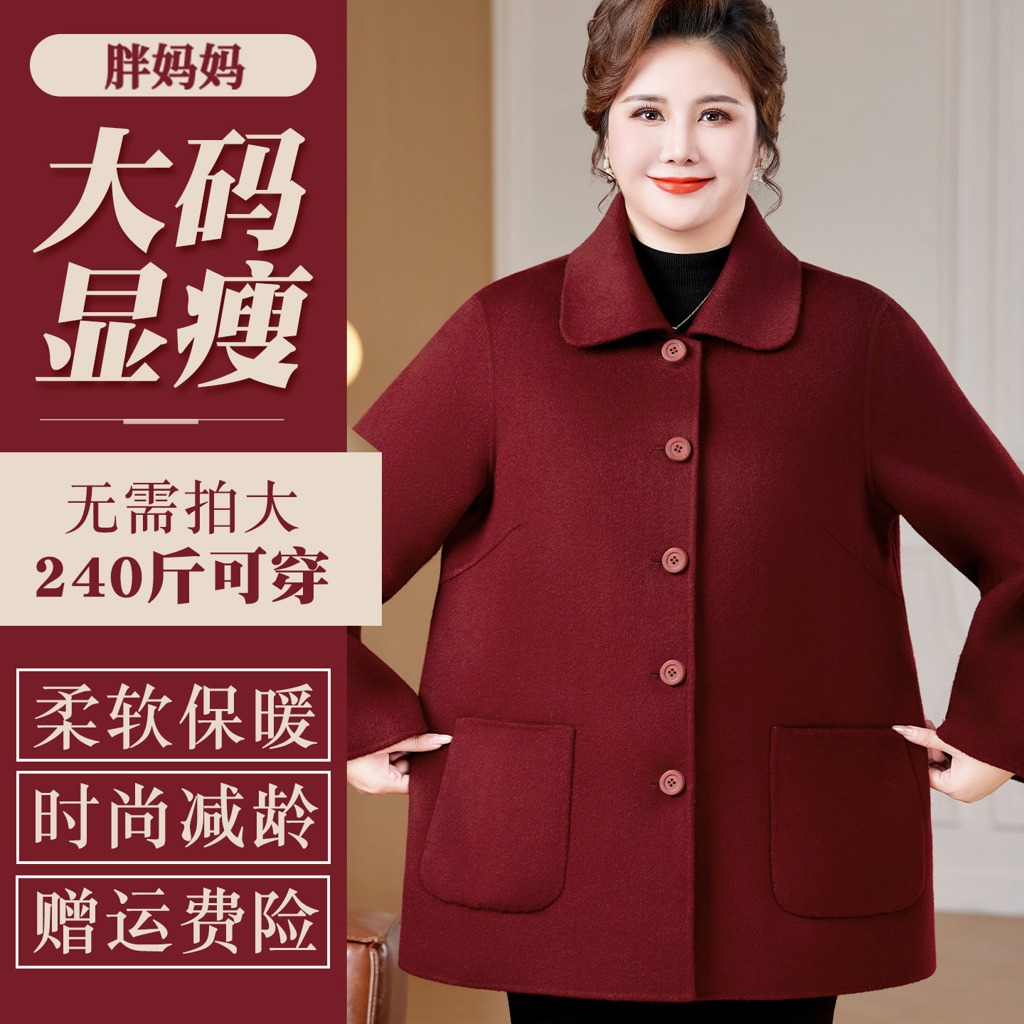特大码双面呢纯羊毛喜婆婆婚宴装