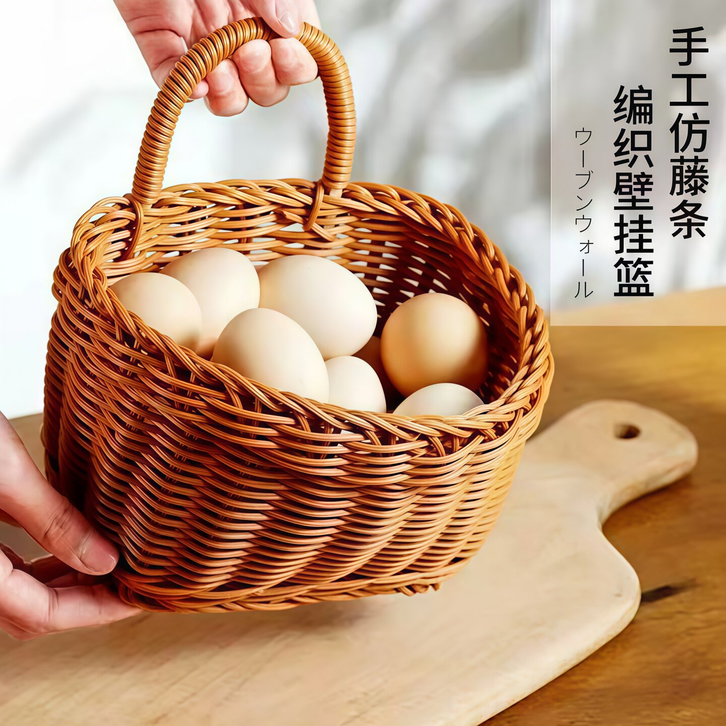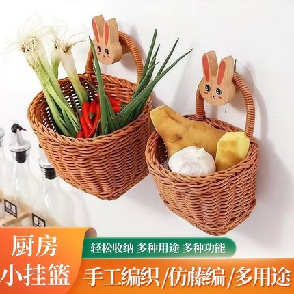厨房葱姜蒜收纳筐收纳小挂篮墙上壁挂编织篮鸡蛋收纳篮仿藤编篮子