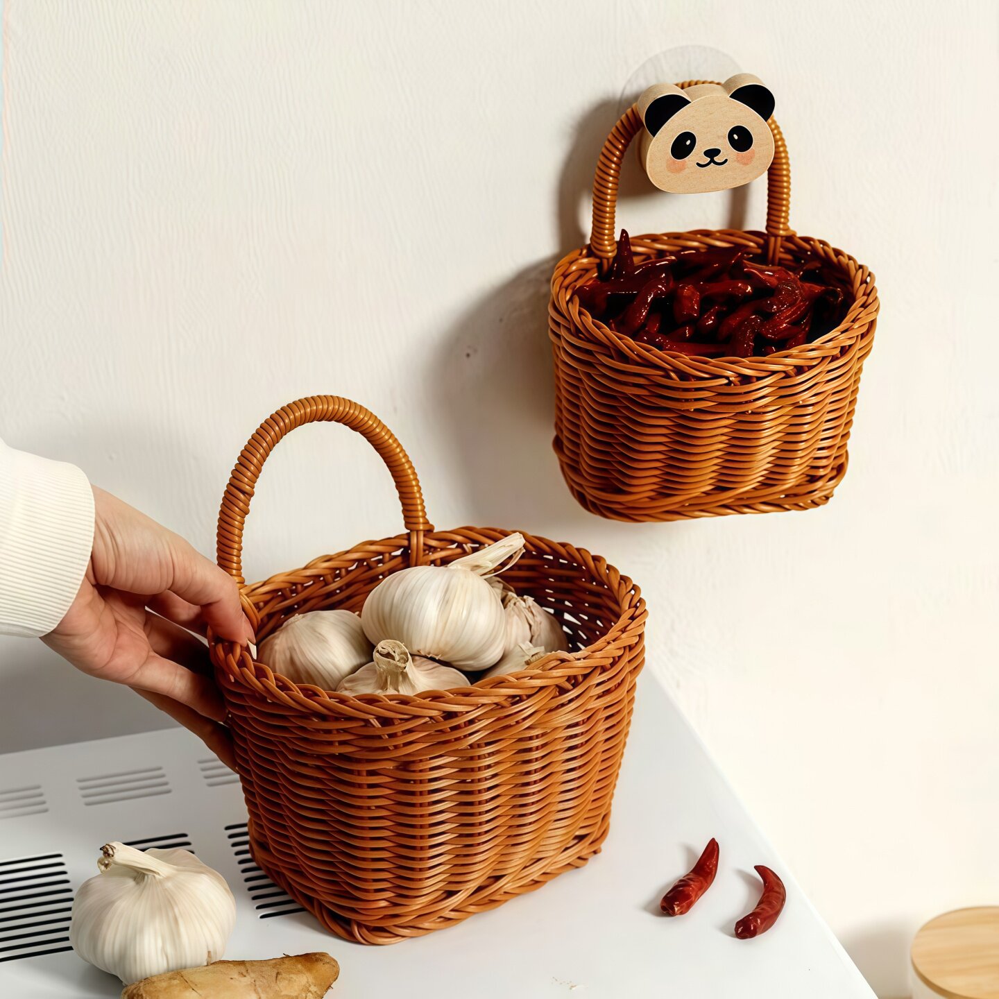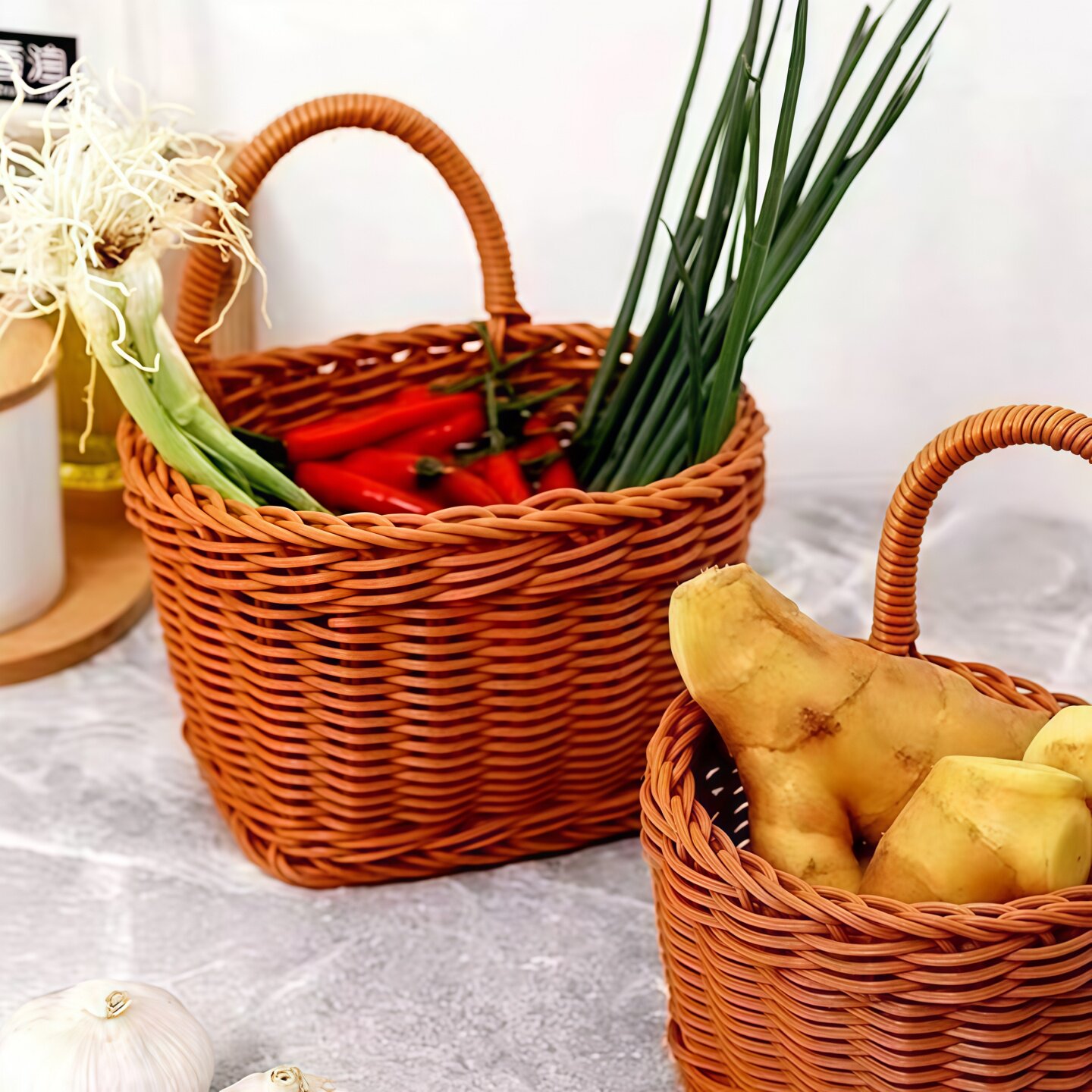 厨房葱姜蒜收纳筐壁挂仿藤编篮子