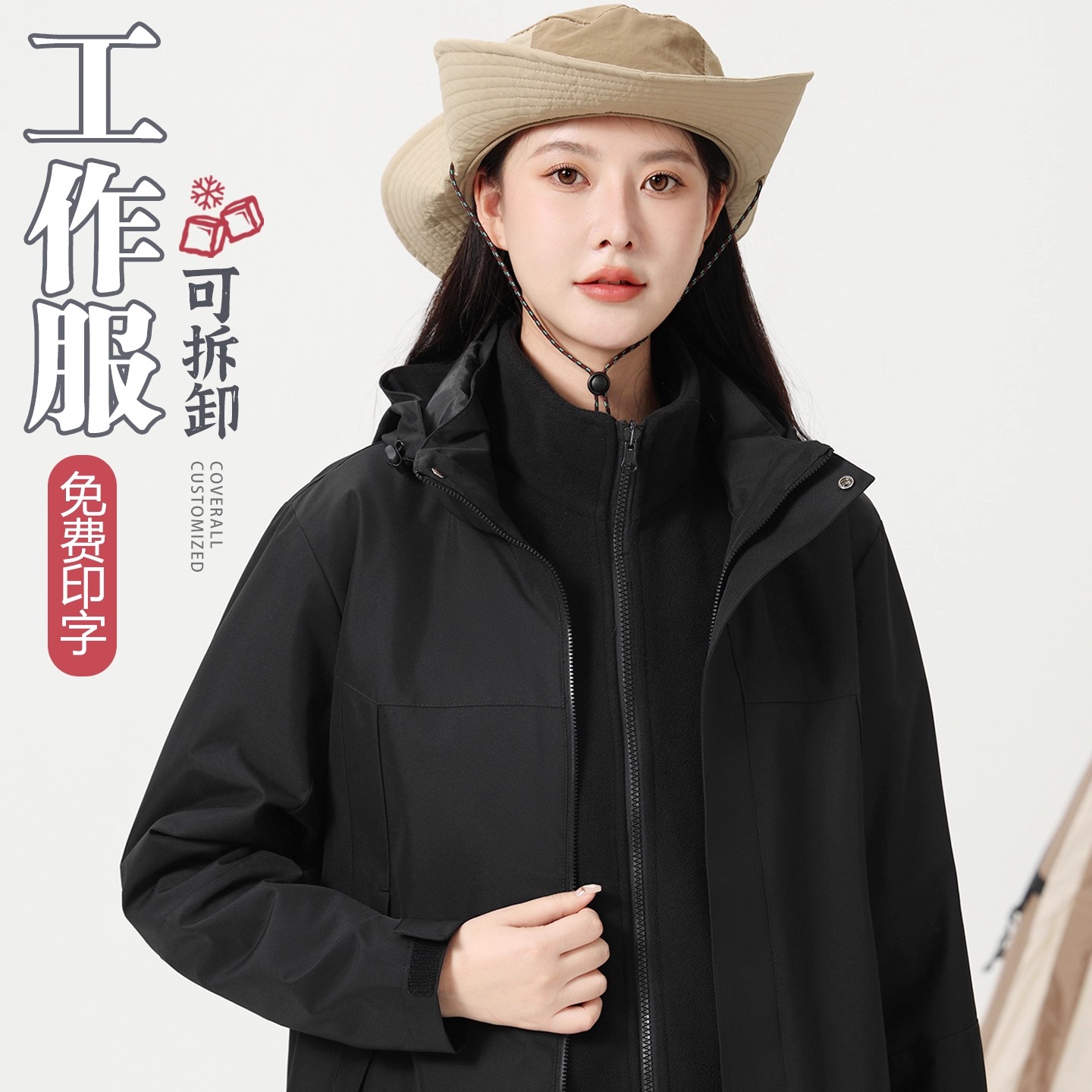 三合一冲锋衣工作服定制印字LOGO工装外套加绒羽绒加厚团体服工服
