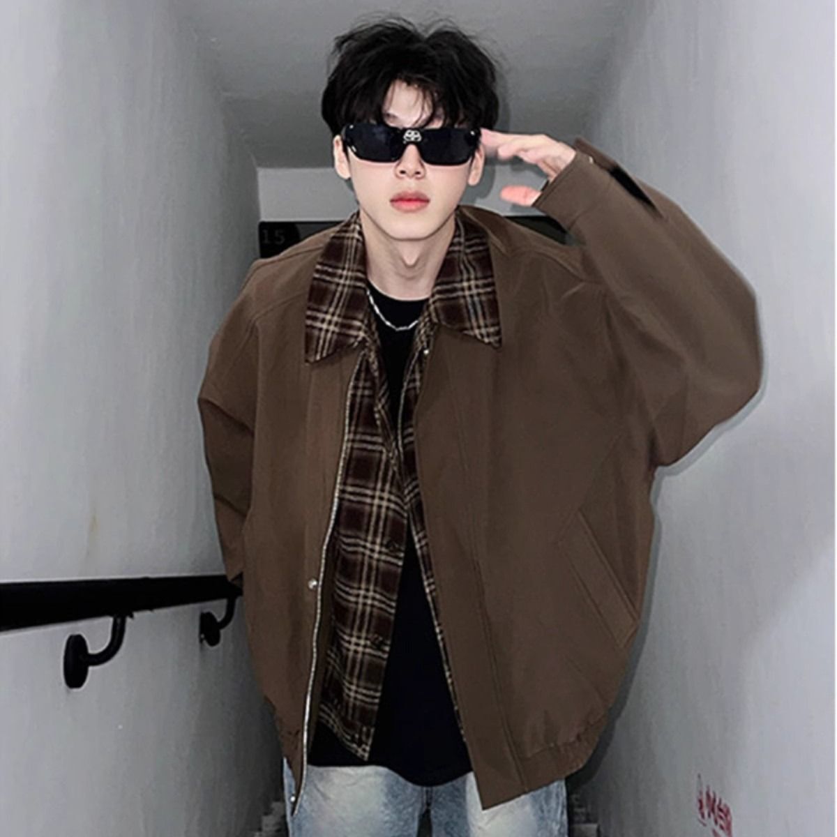 美拉德假两件夹克潮男帅气棒球服套装大学生高级感搭配牛仔裤穿搭