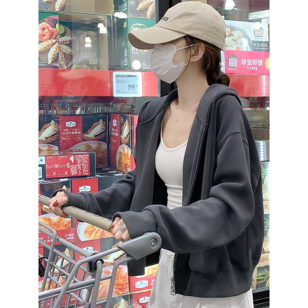 藏蓝色卫衣女春秋款2025新款宽松慵懒显瘦外套小个子短款开衫上衣