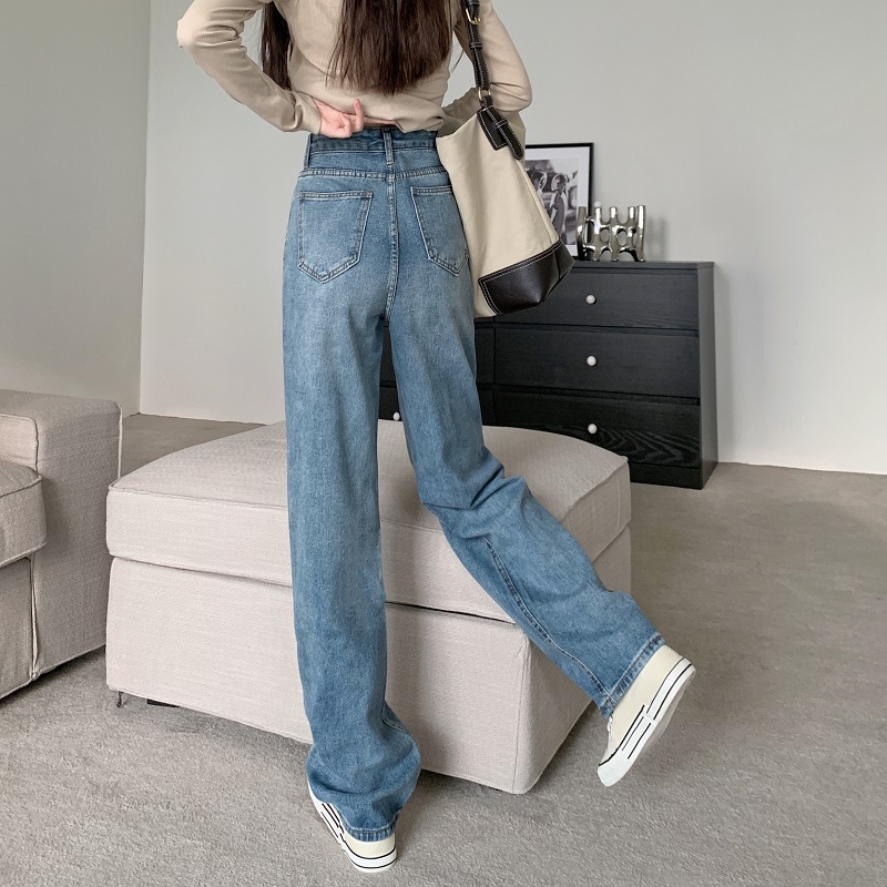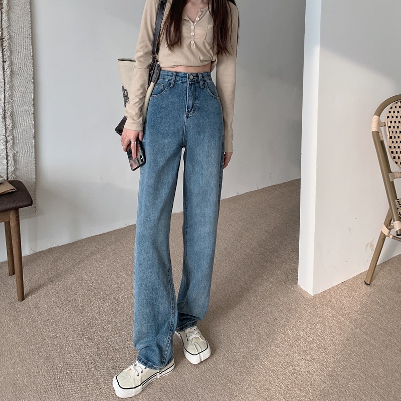 145小个子高腰显瘦牛仔长裤150cm韩版宽松百搭直筒阔腿裤女xs码秋