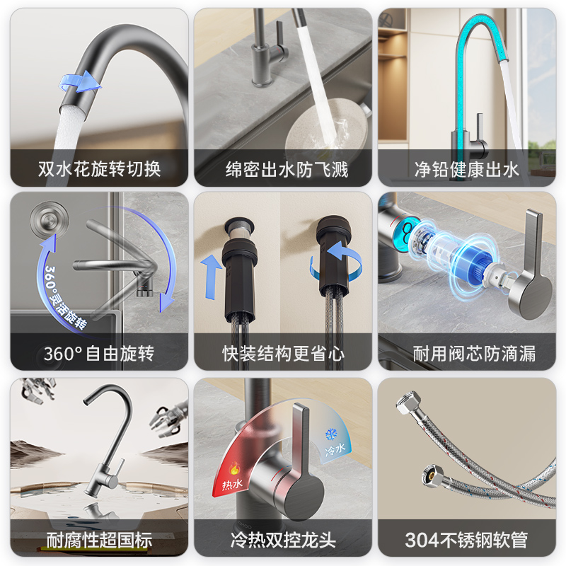 九牧厨房水龙头冷热枪灰色洗菜盆水槽洗碗池家用旋转防溅水洗衣池