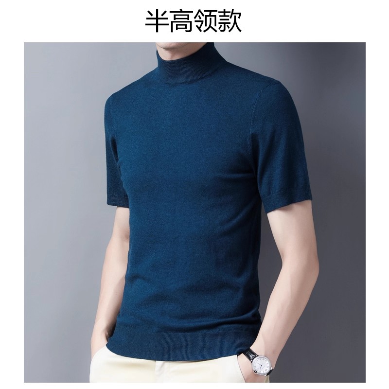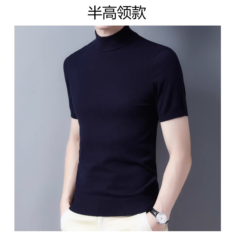 秋冬新款短袖羊绒衫男士半高领厚款毛衣可机洗针织t恤打底羊毛衫