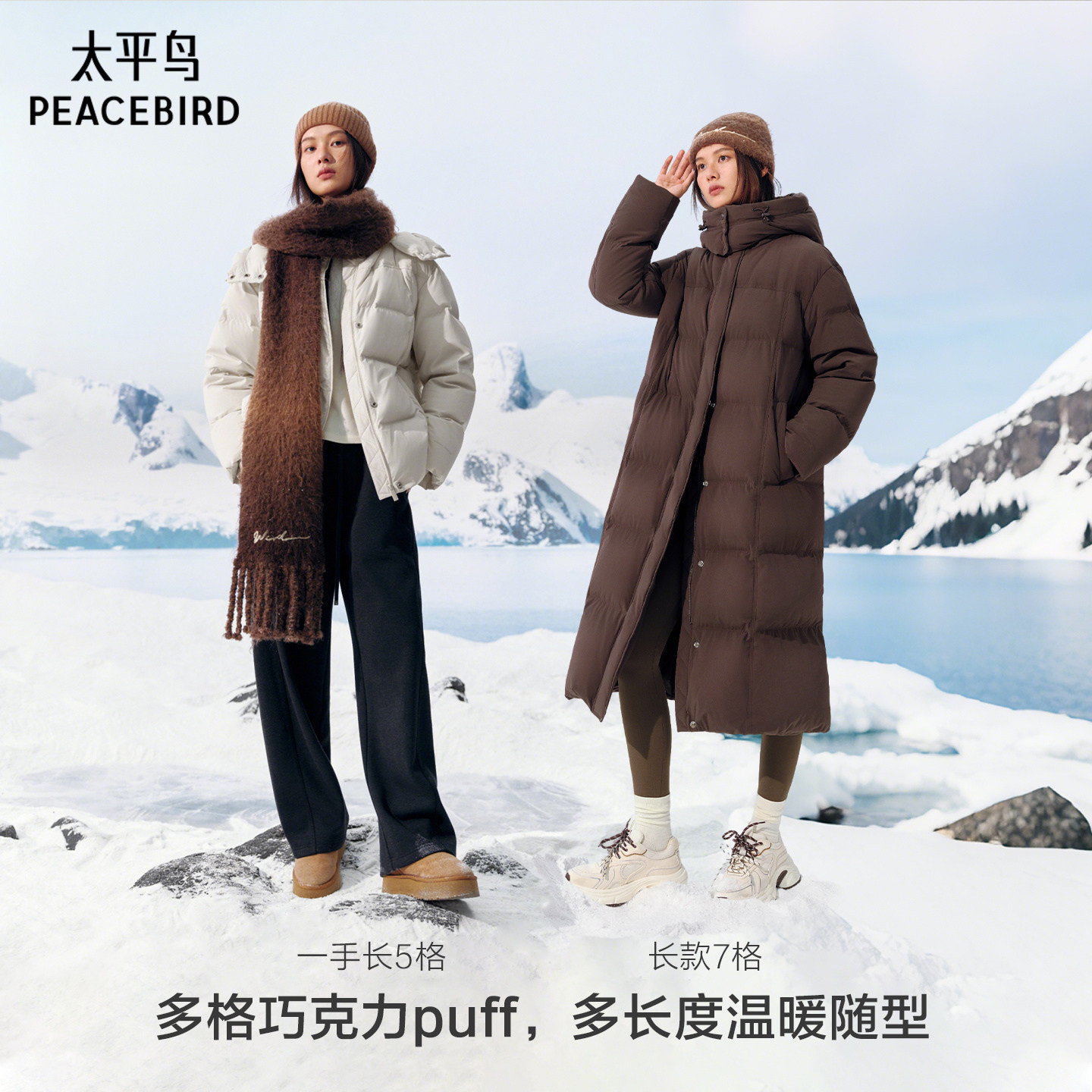 太平鸟巧克力多格puff羽绒服女25年冬装新款加厚中长款外套黑色