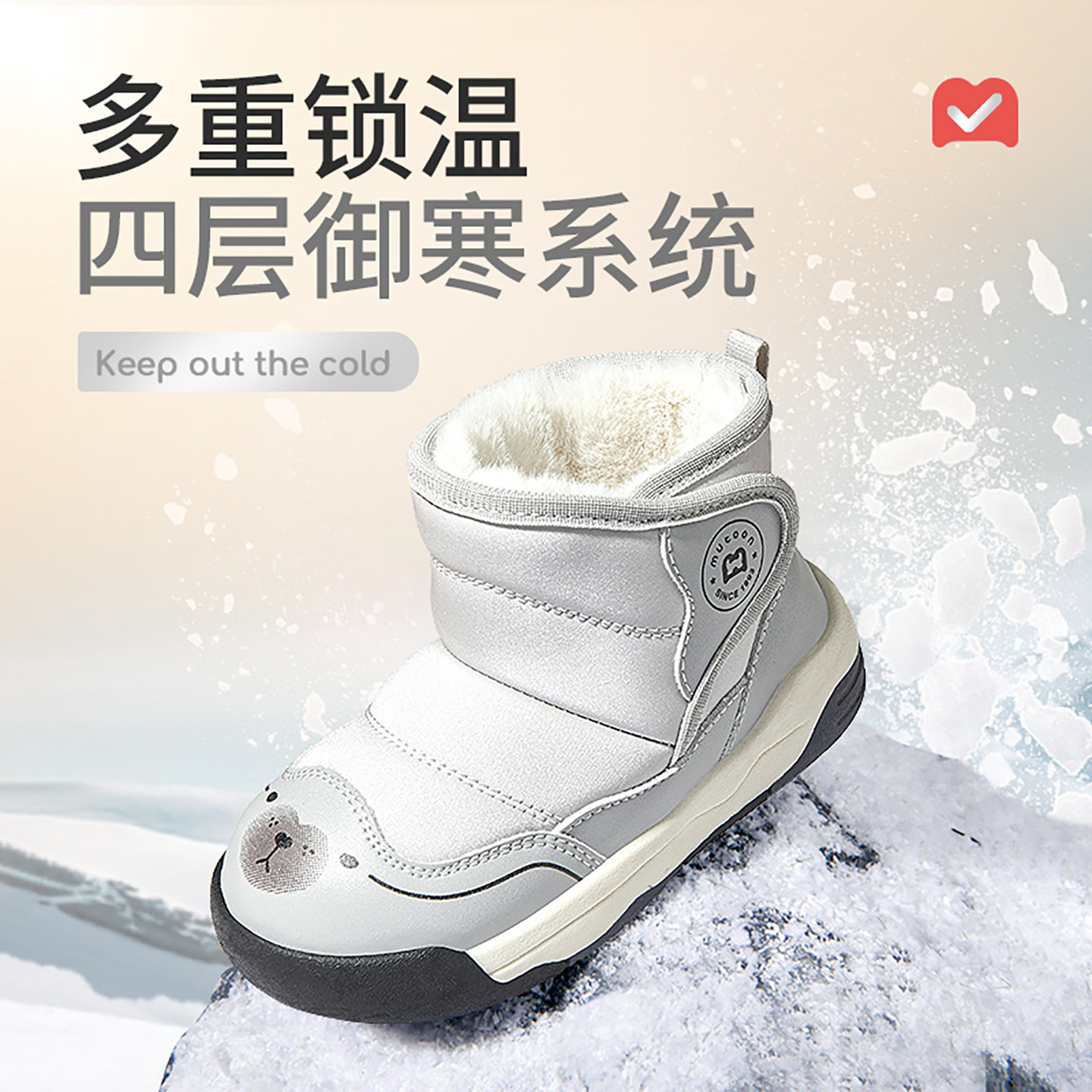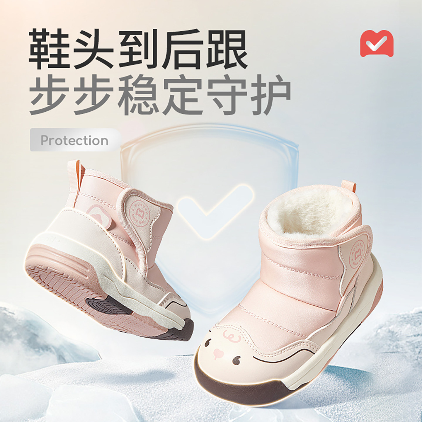 牧童男童女童卡通皮面加绒雪地靴