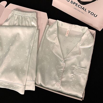 helloKitty高级感冰雪丝睡衣女款夏季天短袖短裤长裤三件套家居服