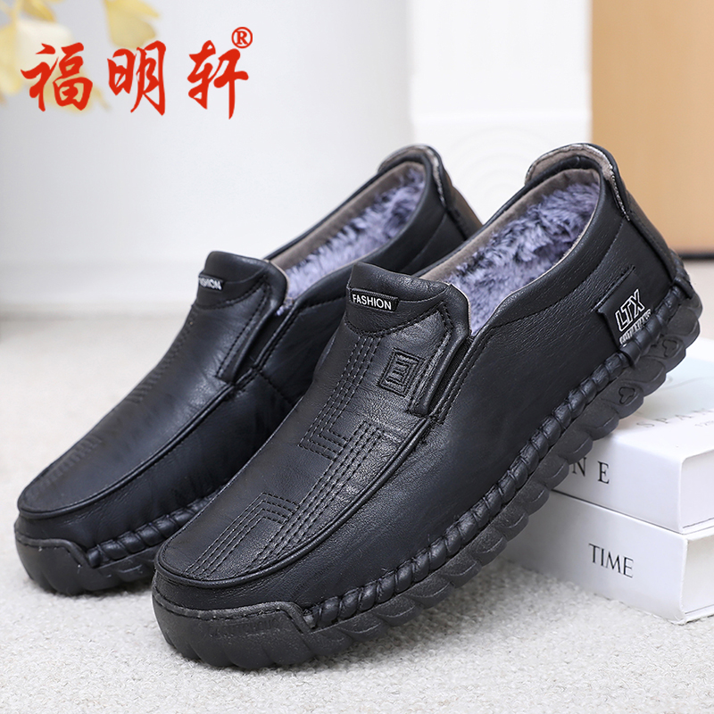 老北京布鞋男款冬季一脚蹬老人鞋防滑软底爸爸鞋加绒加厚休闲棉鞋