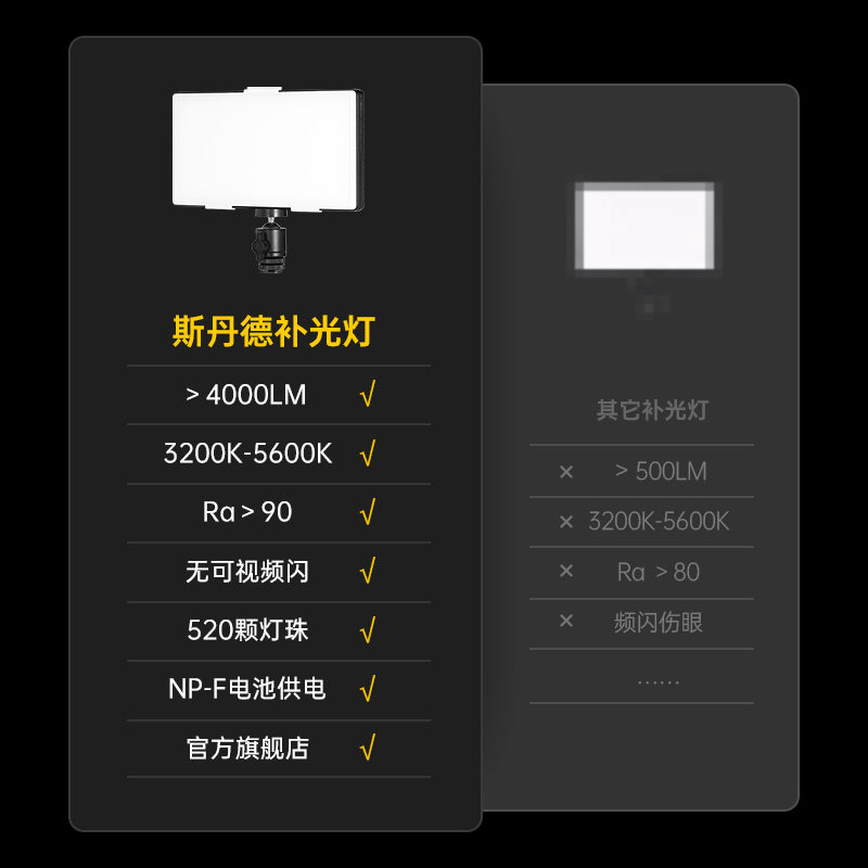斯丹德LED520双色温可调节37W大功率摄影灯LED补光灯影棚拍照迷你打光灯小型摄影拍摄灯光手持便携外置电池