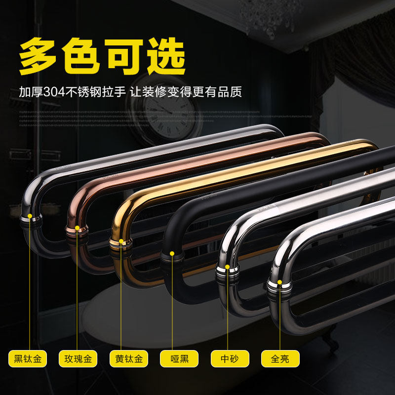 304材质不锈钢淋浴房拉手浴室卫生间移门黑玫瑰金钛金把手孔距440