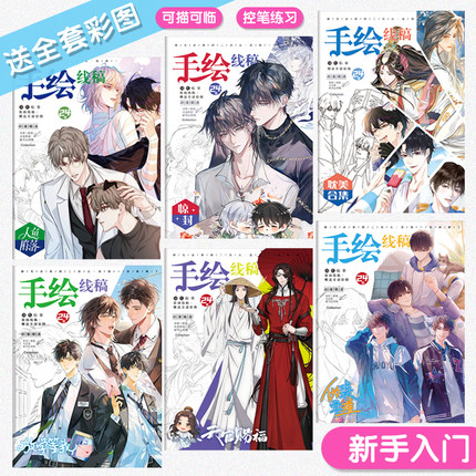 耽美周边手绘线稿人鱼天官伪装放学等我将进酒某某涂色描摹绘画本