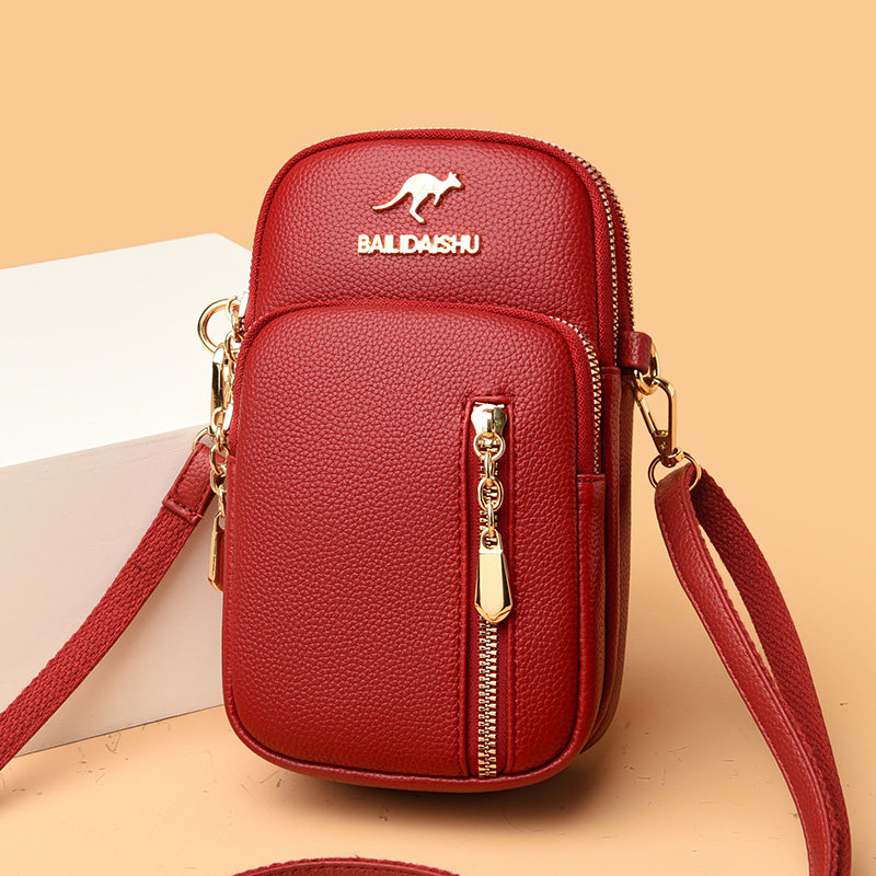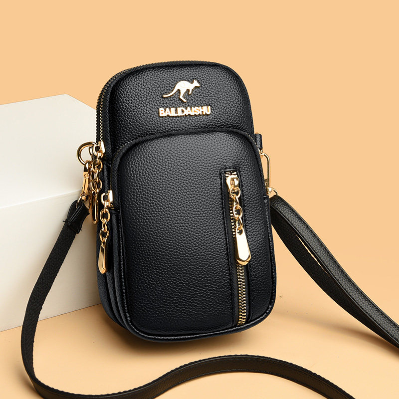 真皮斜挎手机包三层大容量零钱包女2024新款韩版时尚潮妈妈单肩包